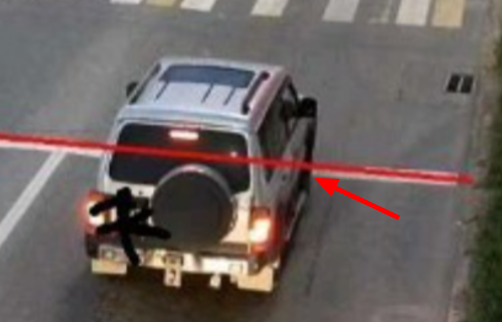Там не так всё просто - на первой фотке он нормально остановился (правая верхняя). На втором фото видно стоящего пешехода и всё еще красный, но автомобиль уже тронулся и проехал вперед как минимум на метр.