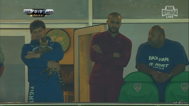 25 SmirnoFFF 10 лет назад Рамзан Кадыров с кошечкой на футбольном матче))) Кот Рамзан Кадыров Футбол