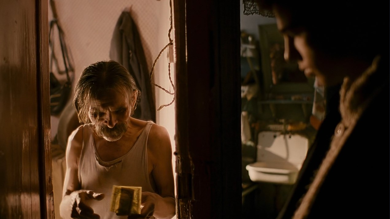 — Хе... Деньги наперёд давай!... [Данила отсчитывает доллары] Доллáри...
