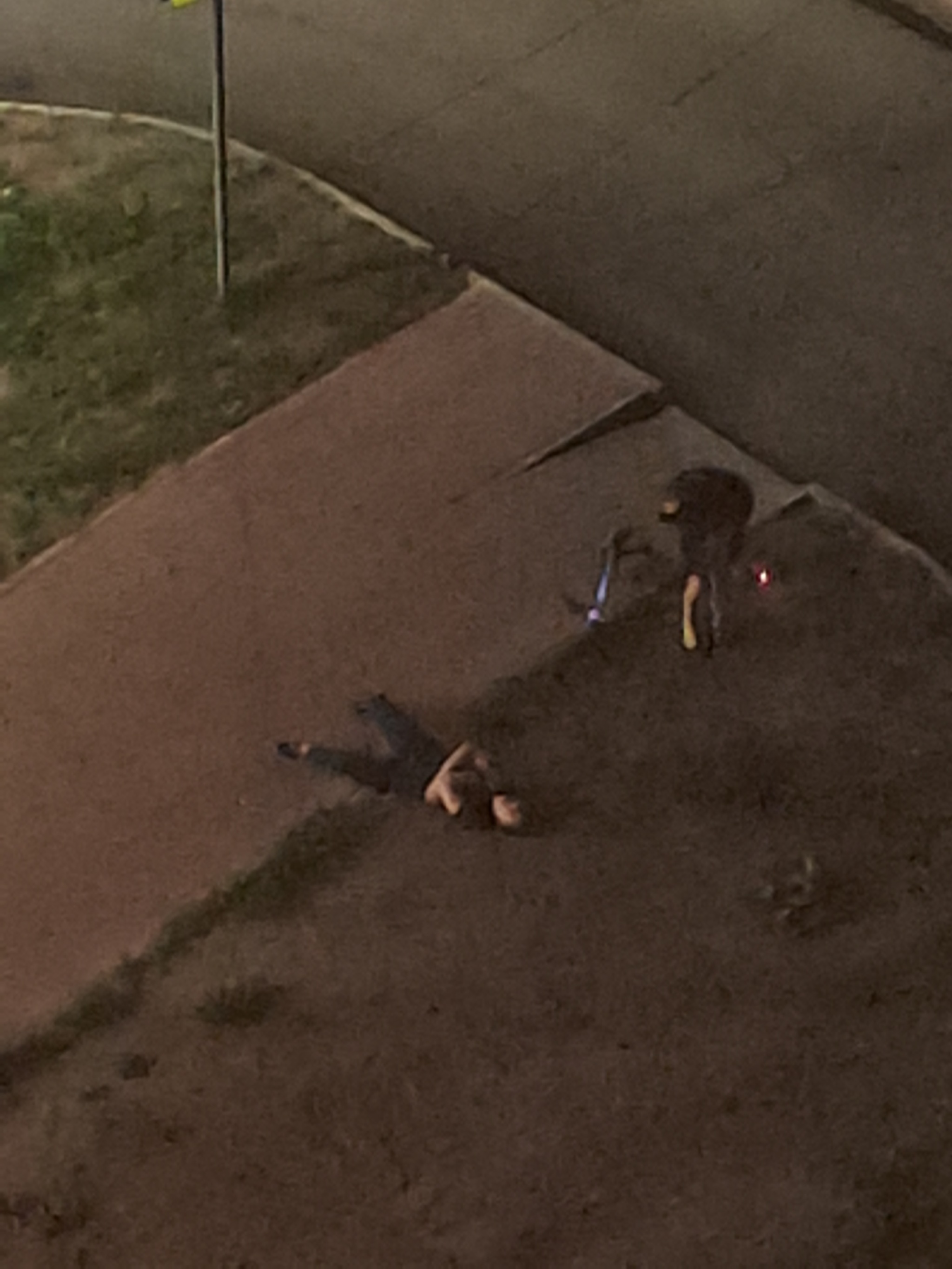 6 июня просто чувак пьяным с девушкой врезались на самокате в бордюк (паребрик - для питерцев). Пиво разбито, вроде целы.