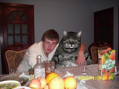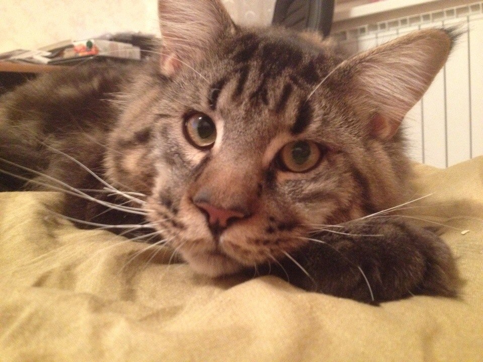 Товарищ как-то в гости заходил, увидел моего мейн-куна, и прибалдел. Сказал, что гладить его сцыкует. Потом привык, уже и на колени пустил. А у кошака есть привычка: если его на руки берут - он изворачивается, обхватывает лапами шею, как бы обнимает, и сильно притягивает. Получается нехилое такое объятие, учитывая его размер, силу и нестиженные когти. А в порыве нежности он ещё и куснуть слегка за щёку или шею может) Так вот, друг его взял на руки, котан сразу сделал фирменный финт-проворот в руках, обхватил товарища за шею и притянул. Товарищ отреагировал следующим образом: дико выпучил глаза, и тихонько просипел: убери его нахер, он же меня сожрёт!! Секунду спустя кошара прихватила его за кожу на шее. Друг тихонько запищал. Ну чё, отцепили. Товарищ не пострадал)