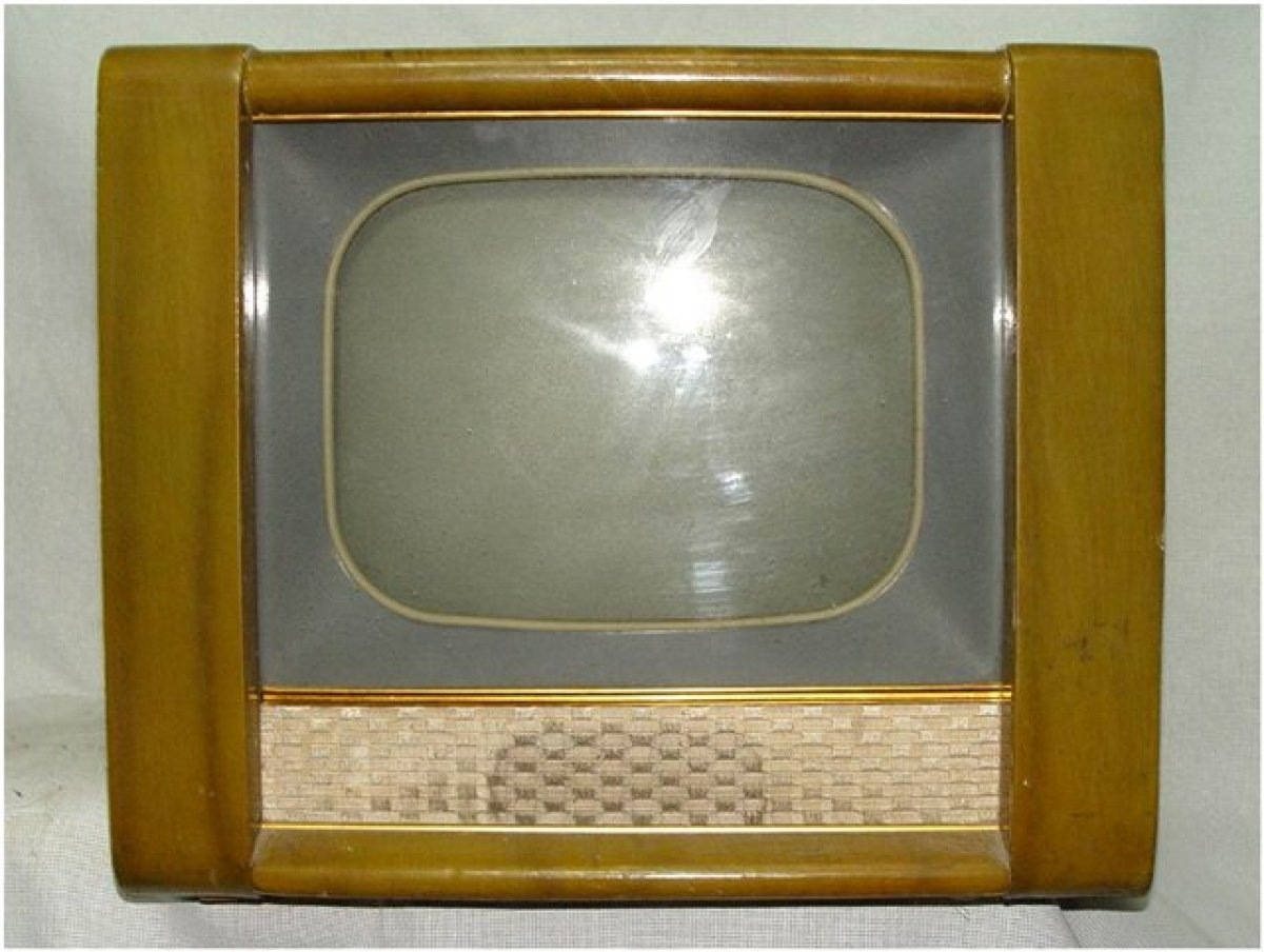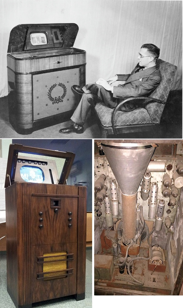 Первые телепередачи электронного телевидения начались в середине 30х годов. Кинескопы тогда имели маленький экран, но зато очень длинный хвост: еще не научились отклонять луч электронов на большой угол. Поэтому кинескоп в телевизоре размещали вертикально, а изображение зритель видел благодаря зеркалу над кинескопом.