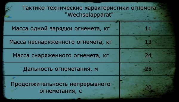 Необходимость минимизации ранцевых огнеметов была доказана всем опытом боевых действий. Оказалось, что удачный исход любой атаки был гарантирован лишь в том случае, если огнеметным расчетам удавалось сблизиться с противником на дистанцию составлявшую порядка 30-40 шагов. В противном случае огнеметчики с крупногабаритными аппаратами за спиной почти поголовно уничтожались вражеским огнем.