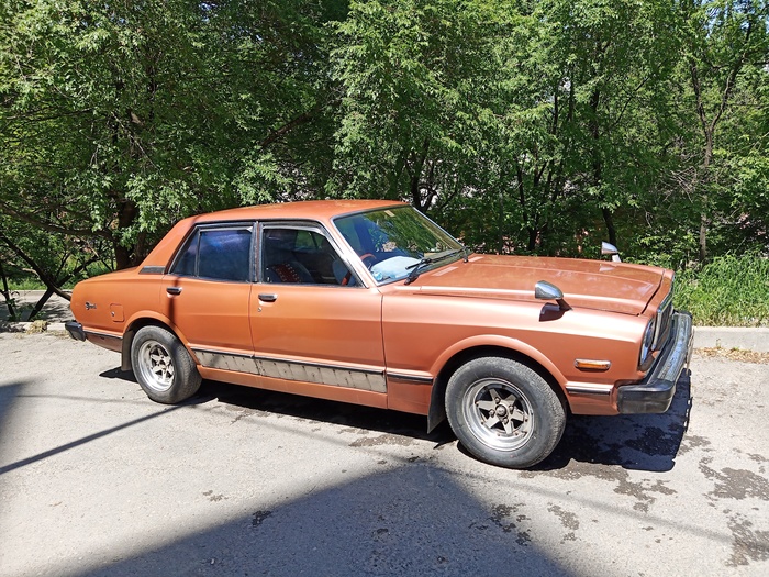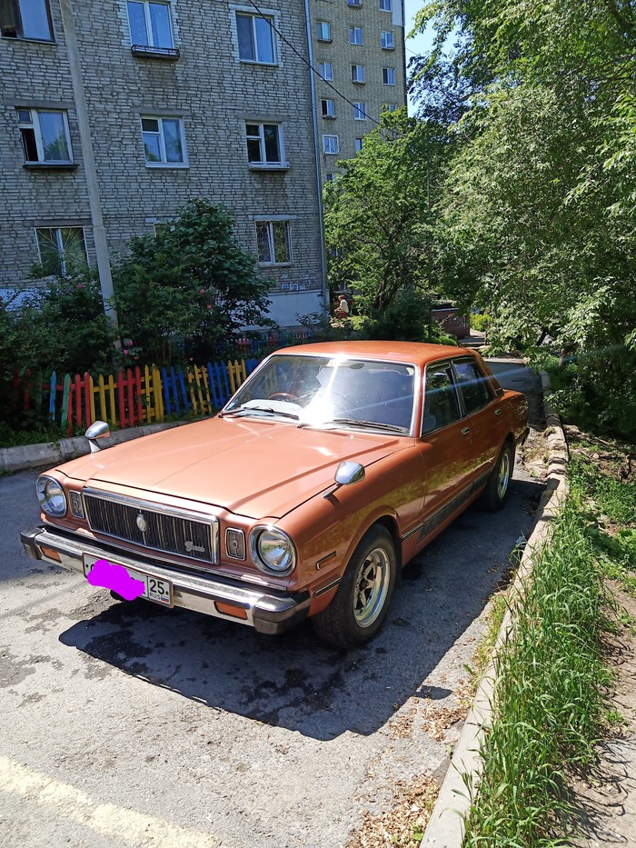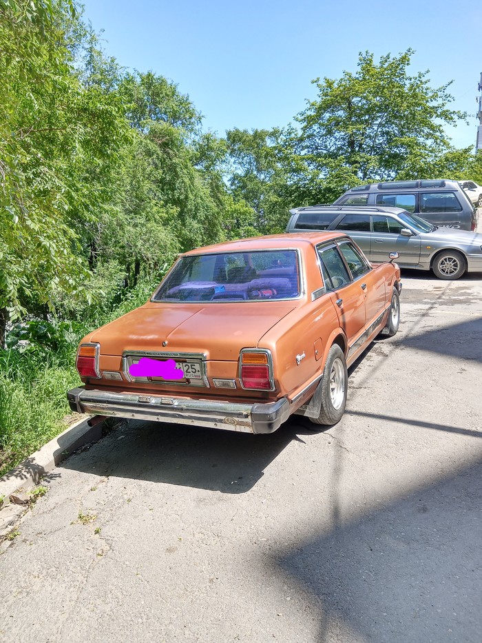 Вот такого красавца встретил в одном из дворов г. Владивостока. Toyota MarkII в кузове X30, конкретно не скажу несколько модификаций было. Самые поздние экземпляры от 1980 года. Следы ремонтов видны, но в целом отлично сохранился. Видел пару раз, на дороге, так что полностью на ходу. Автомат, кондиционер, полный электропакет, регулировка зеркал все дела. Как говорится Марка надо брать.