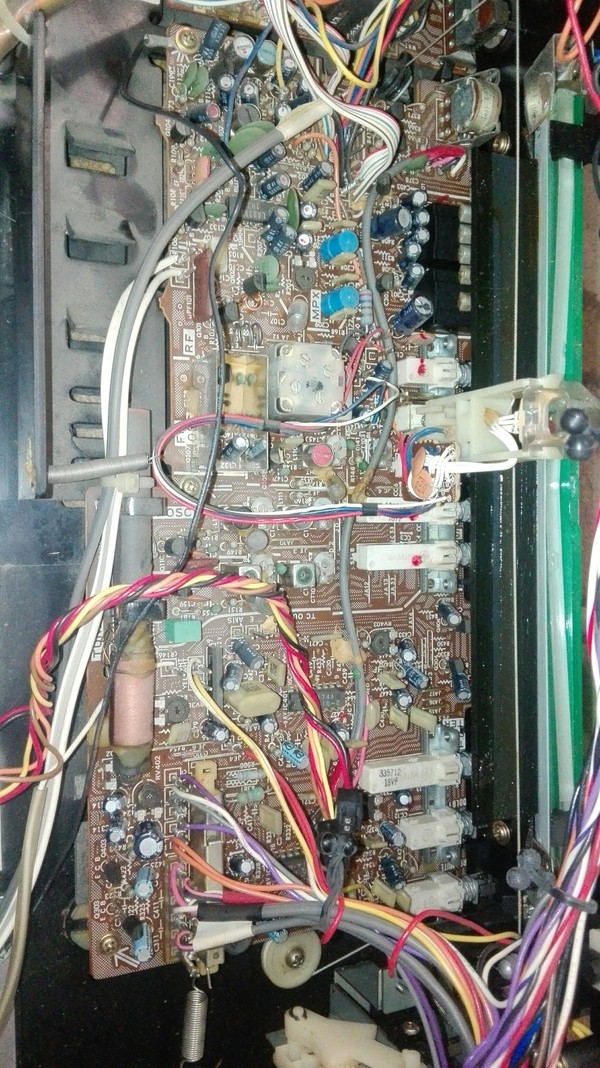 Приведя в нормальное состояние, отмыв и убрав ржу с железных элементов да покрасив их, включил для проверки. И было досадно узнать, что правый канал не качает динамик на полную :(