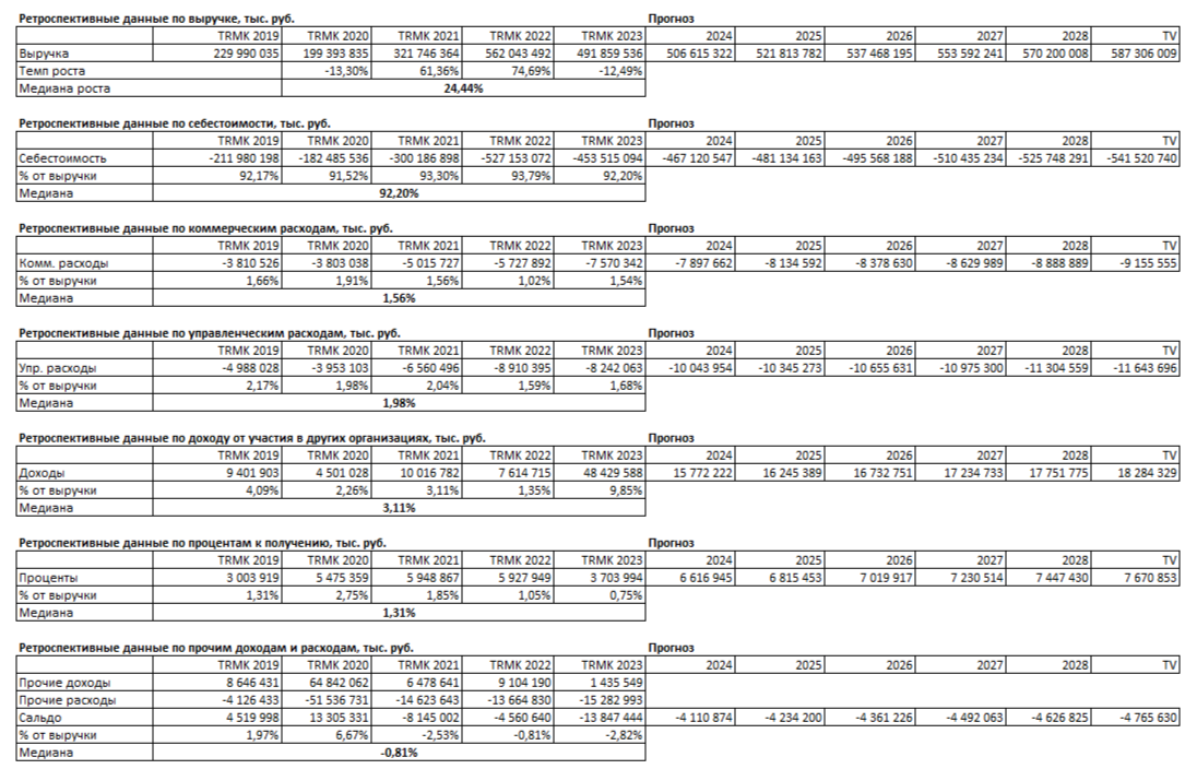 3. Прогноз консервативного роста выручки берем из «Прогноза социально-экономического развития Российской Федерации на 2024 год и на плановый период 2025 и 2026 г.» — 3,00% в год.