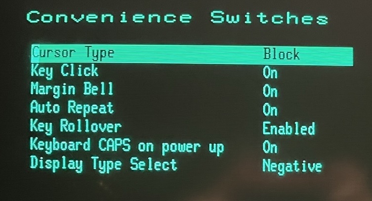 Настало время обнаружить конфигурационное меню. Согласно мануалу, оно должно было появиться, при нажатии сочетания кнопок CTRL и дважды HELP, но проблема заключалась в том, что на клавиатуре отсутствовали, как сама кнопка HELP, так и намёк на неё. Методом «научного тыка» в настроечное меню удалось зайти совершенно другим сочетанием SHIFT и два раза MODE.