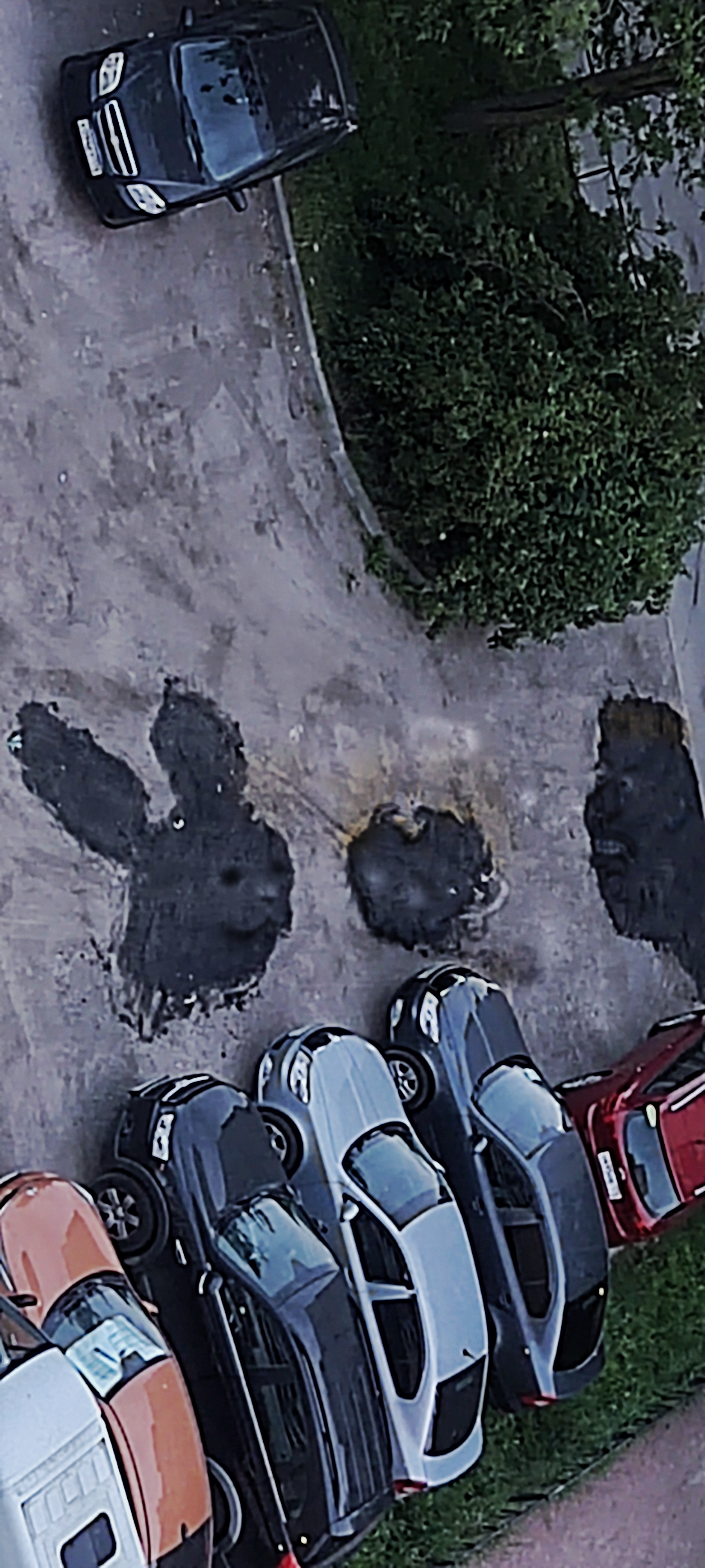 Увидел в скучных асфальтовых нашлепках парковки под окном вот эту картину. В Фотошоп не умею, использовал Snaps**d, да и то функции "затемнение", "высветление" и "dodge&burn".