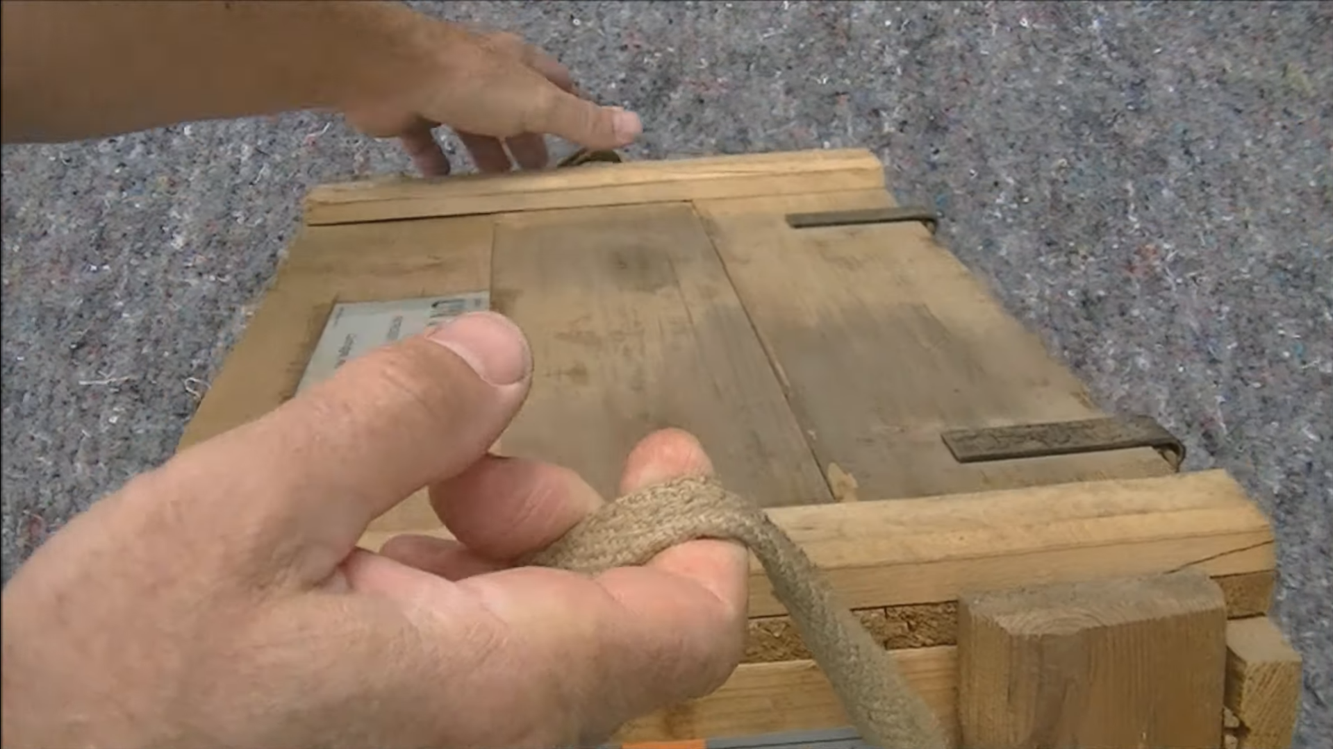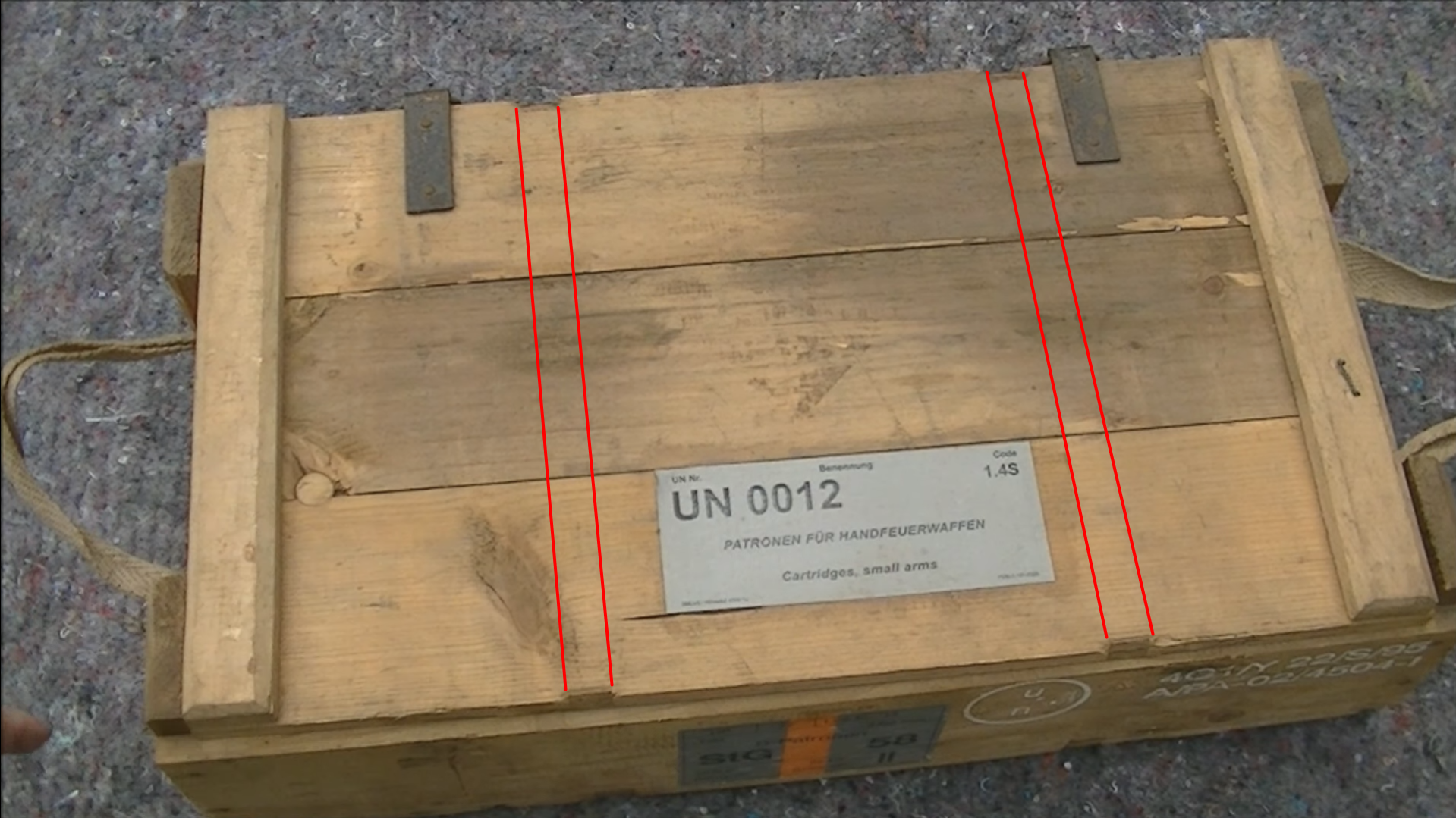 Изначально, наверное, ящик был стянут двумя металлическими шинами - есть следы от них.