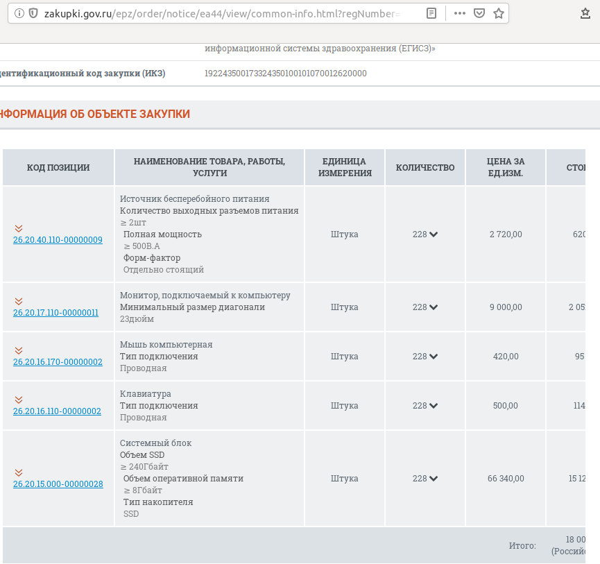 Оп-па, ценник упал в два раза, правда без мыши и клавиатуры но эт вопрос 500 рублей. Причем заметьте это розничная цена, а в нашей закупке идет речь о 228 единицах техники, что является оптом. 43