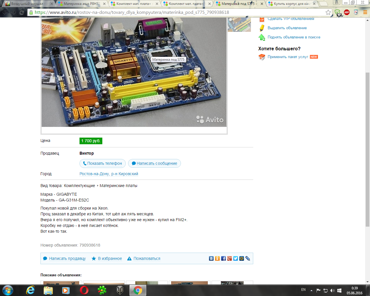 akukaracha Расписал) 9 лет назад решил я собрать бюджетный системник, а тут эта милота ^_^ [моё] Авито Железо Объявление на Авито