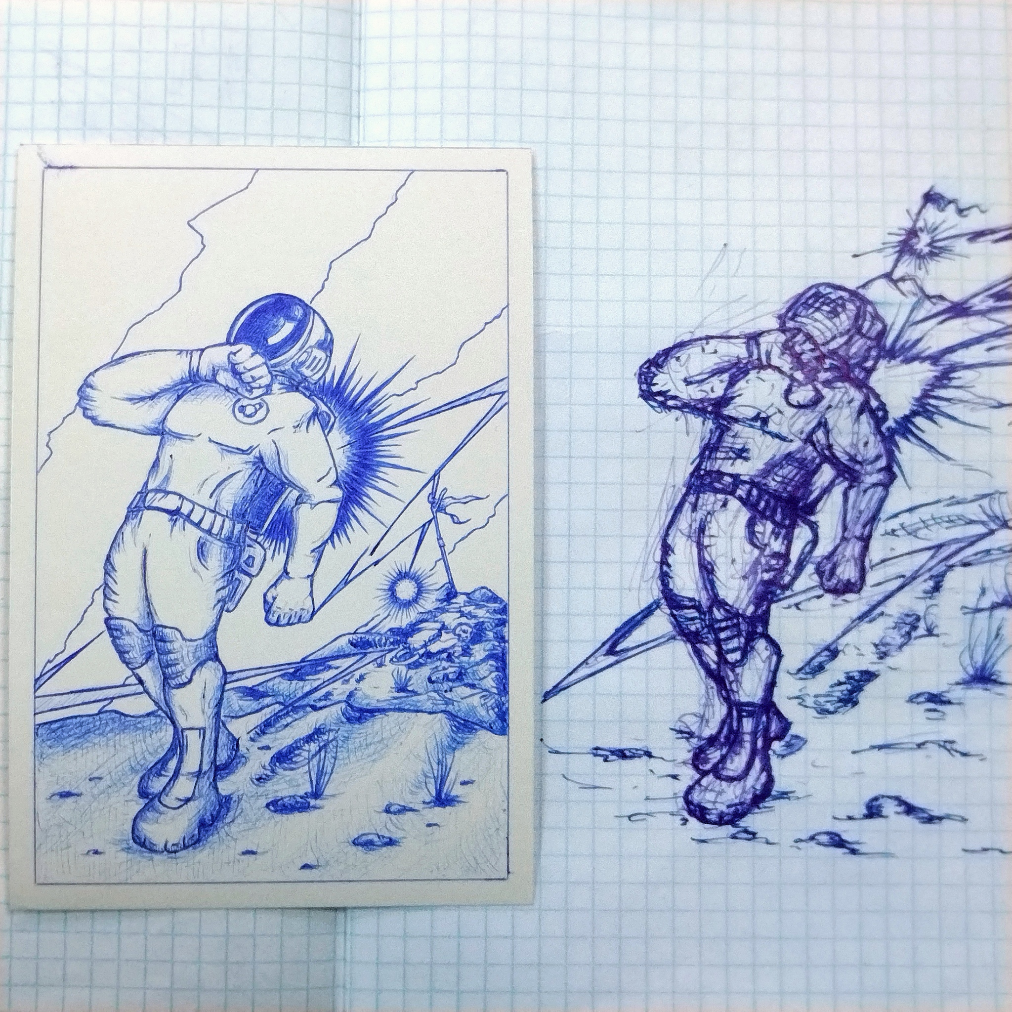 "... вскоре Рэдрик услышал знакомое жужжание с обеих сторон. На левом холме, освещенном солнцем, ничего не было видно, но на склоне справа, в тени, запрыгали бледные лиловатые огоньки.[...] и в ту же секунду громовой разряд расколол воздух. Над самыми головами затряслась в бешеной пляске разветвленная молния, едва заметная на фоне неба.[...] Рэдрик, чувствуя, что уши ему заложило от грохота, повернул голову и увидел в тени ярко-алое, быстро тающее пятно среди камней, и сейчас же ударила вторая молния." (Стругацкие "Пикник на обочине")