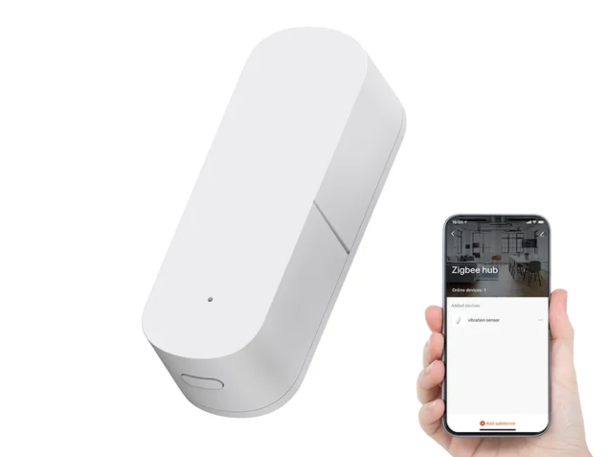 Он мгновенно реагирует на любые колебания и отправляет уведомления на смартфон через Zigbee-шлюз, что позволяет контролировать безопасность дома удалённо.