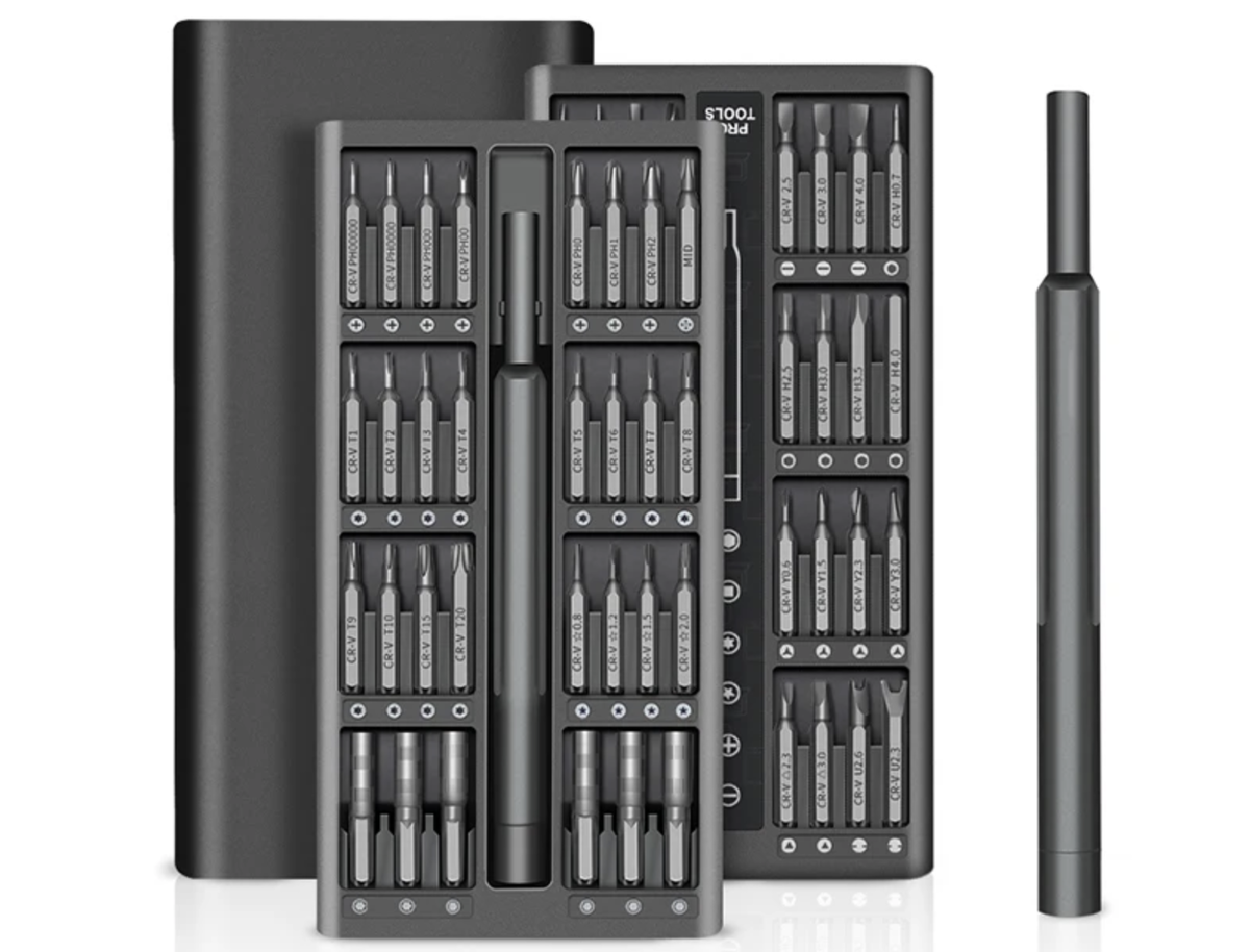 В комплект входят биты для ремонта смартфонов, ноутбуков, очков, часов и даже мелкой электроники. Компактные размеры позволяют брать кейс с собой в поездки или хранить в ящике стола.