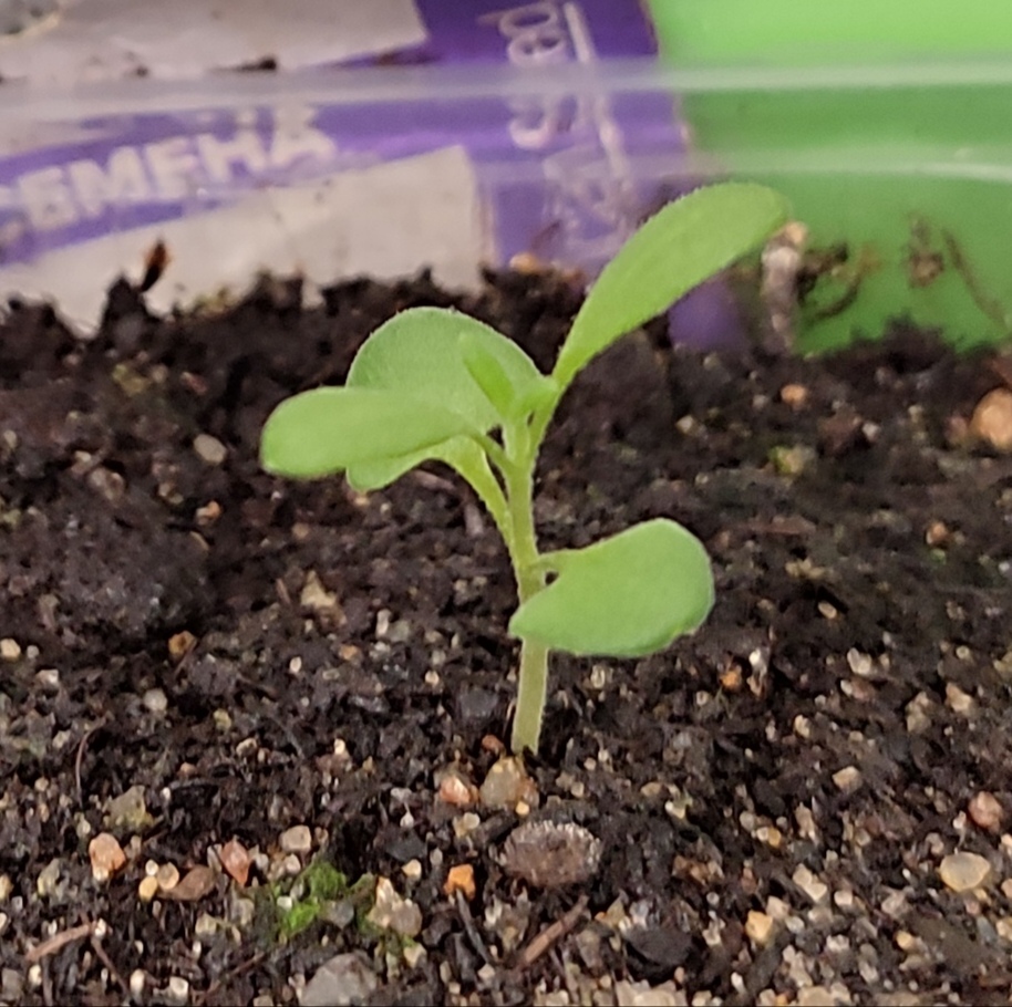 Белую посеяла впервые около трёх недель назад, из пяти семян помощник в лице сына одно семя потерял (помогал сеять), из оставшихся четырёх взошёл один росток, на нём уже первые настоящие листья появились...