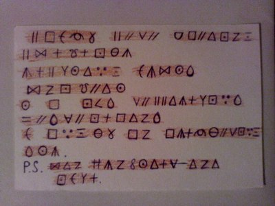 "ты головой ебанулся? я тоже могу от фонаря придумать какой то шифр и всем посоветовать его разгадать? интересно будет ... ?"
