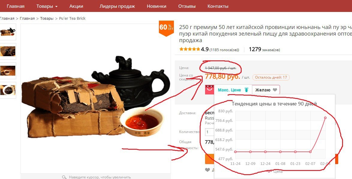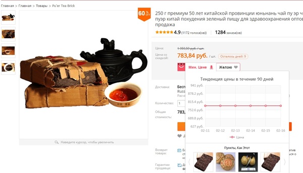 Расширение для aliexpress создает фиктивную историю цен.