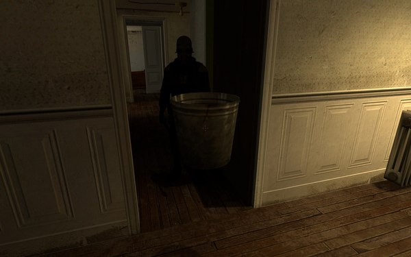 Дело было сделано... Но так просто расстаться с ведром я уже не мог. В каком-то смысле мы сроднились с ним. Стали друзьями, если можно так сказать. К тому же это была часть моей маскировки... Теперь я просто не мог бросить ведро на произвол судьбы в осажденном доме. А потому я принял волевое решение и мы отправились в дальнейший путь. В неизвестность... Потому что дорогу я так и не узнал, а это значит, что выход придется искать самим... Благо, кажется, в конце этого коридора я видел второй лестничный пролет...