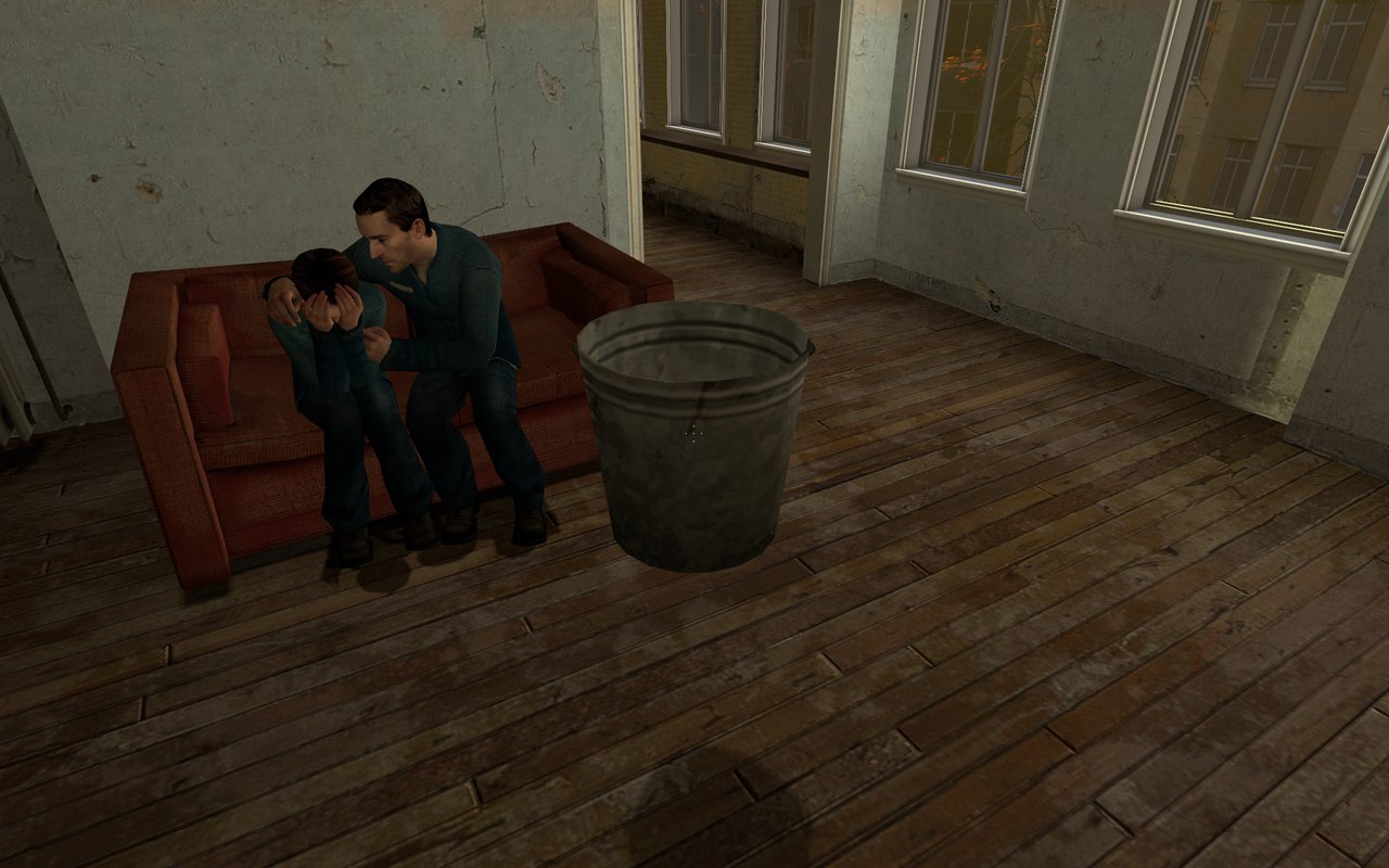 Глядя на обитателей этого дома, сердце невольно сжимается... Что-то щемить в груди начинает. Честно говоря, я им не завидую. Даже несмотря на то, что и сам оказался в подобной ситуации. Но я то здесь всего полчаса. А они... черт... а какой сейчас вообще год?.. Может оставить бедолагам ведро?
