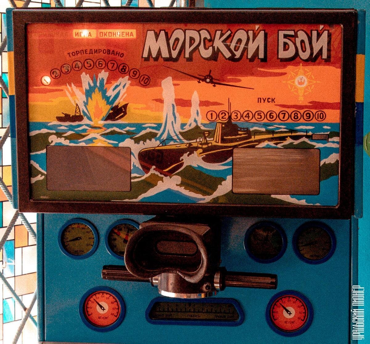 Автомат "Морской бой" производился на Серпуховском радиотехническом заводе с 1974 по 1991 год. Суть игры - используя 10 торпед потопить максимальное количество кораблей противника. При результате 10 из 10, ты получал призовую игру из трех пусков торпед.