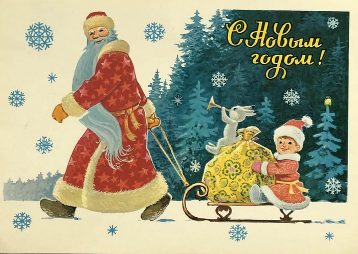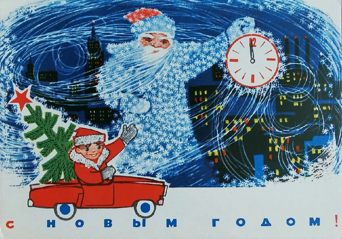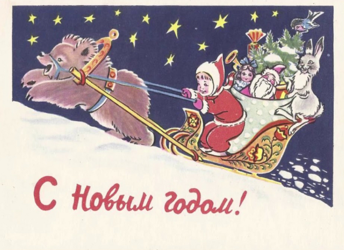 Рассматривая старые новогодние открытки (4) Как добирается Новый год