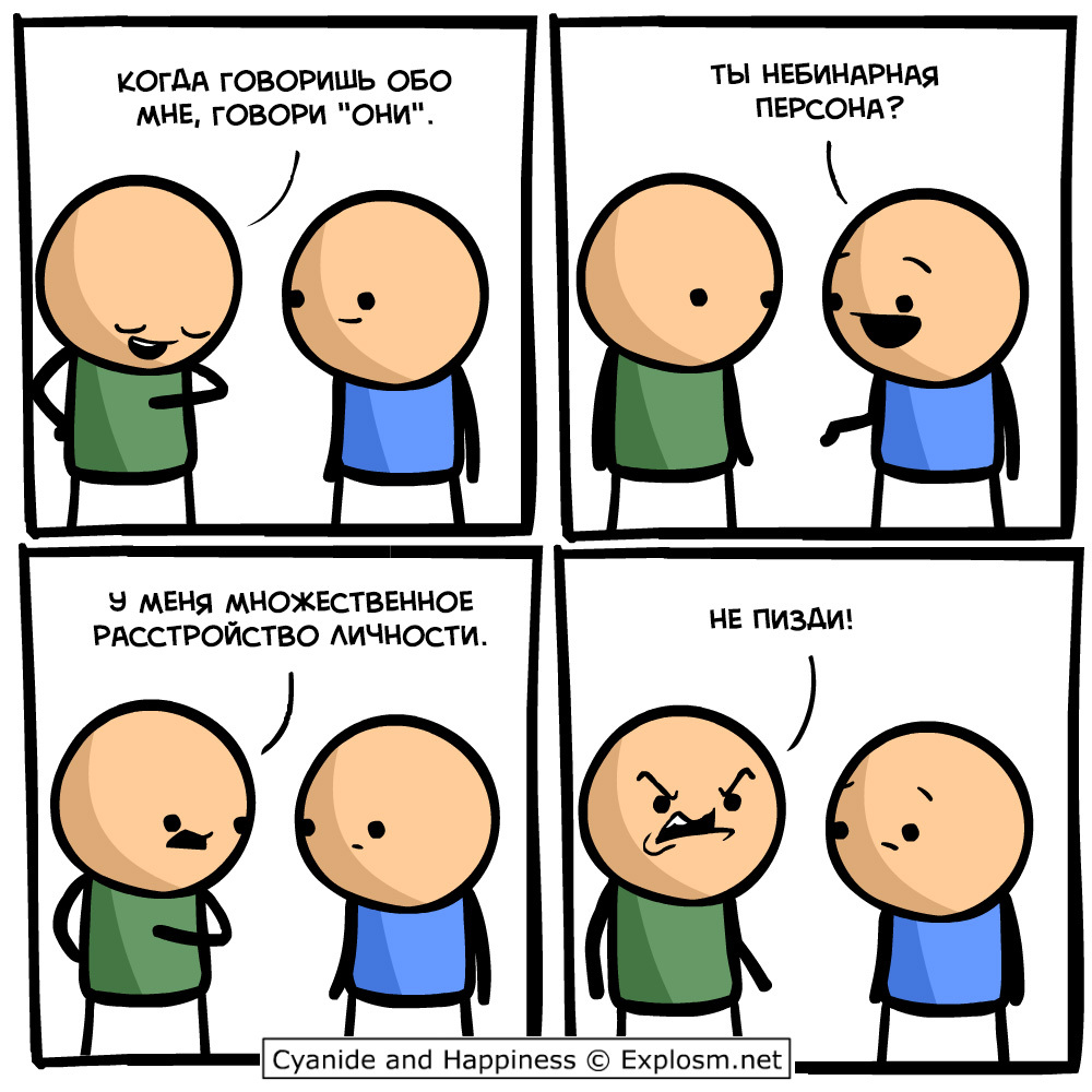 523 Pcheloff Юмор Расстройство личности 2 года назад Оригинал: https://explosm.net/comics/pronouns-3#comic Комиксы Cyanide and Happiness Психология Психотерапия Юмор Перевод Мат 20 2 1 Ещё 0