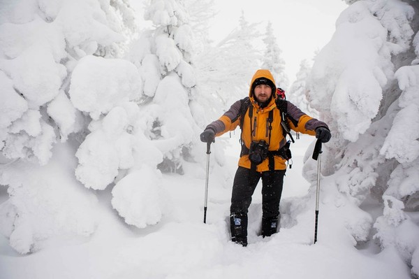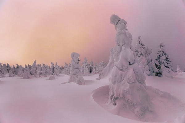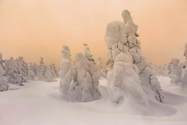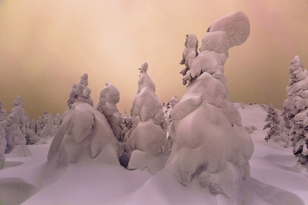 Рано утром я вышел из метеостанции поснимать пейзажи. Ночная метель немного утихла, но снег по-прежнему носило в воздухе. Солнце еще не встало над горизонтом, но в направлении восхода что-то уже светилось.