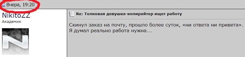На серче прикольный заказчик отписался в теме одной барышни, написав что мадама не хотит работать в субботу-воскресенье.