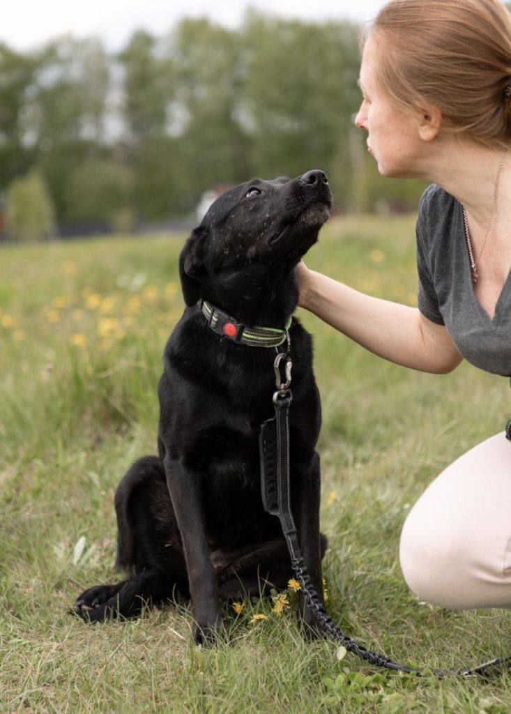 Полностью подготовили её к дому, к проживанию в квартире или внутри частного дома. Никаких цепей и будок - Альма абсолютно домашняя собака. Терпит до выгула, знает все правила домашней жизни. Аккуратная, послушная.