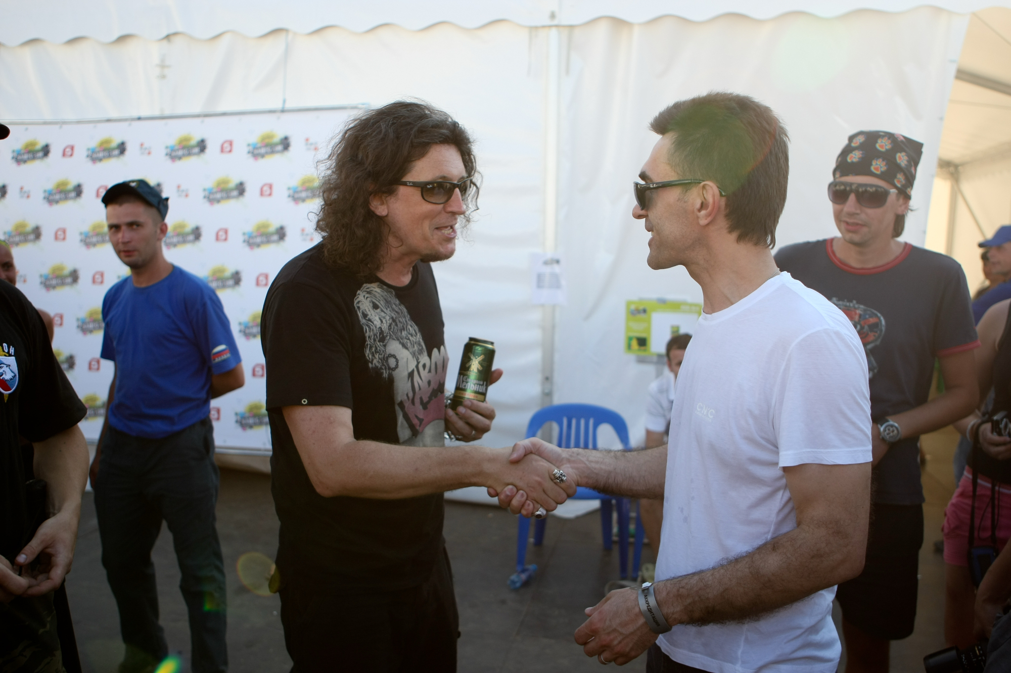 Сергей Галанин (гр.СерьГа) и Вячеслав Бутусов (гр.Nautilus Pompilius) за сценой