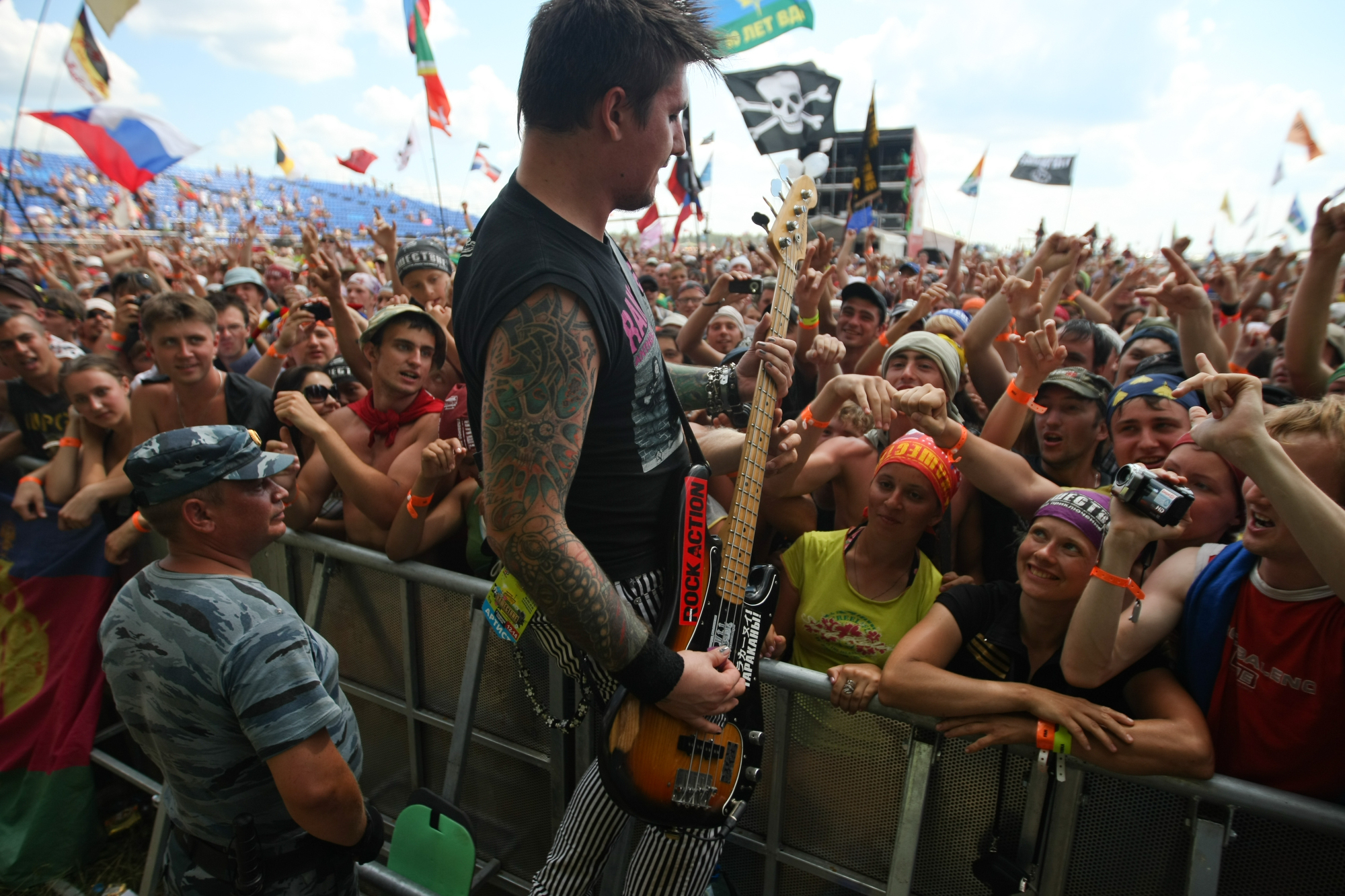 На третий день удивительно много "запрещенки". Вот Дмитрий Спирин из группы "Тараканы". Признан в России иноагентом.