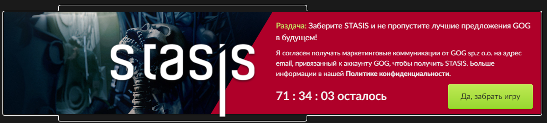⚠️У игроков из РФ баннер с раздачей может не отображаться на главной сайта. В таком случае можно войти на него через VPN или воспользоваться прямой ссылкой , чтобы забрать игру.