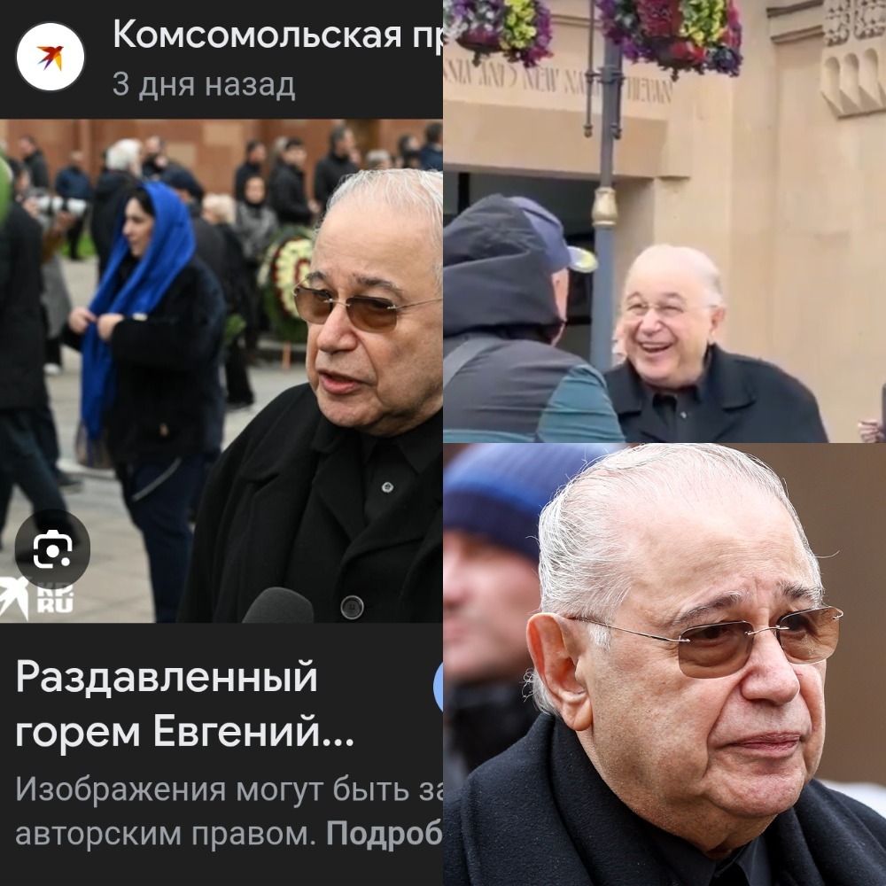 joxer Раздавленный горем Петросян 4 месяца назад Евгений Петросян, на похоронах Кеосаяна, на камеру изображал вселенскую скорбь, а без камер вёл себя как обычно. [моё] Евгений Петросян Тигран Кеосаян Похороны Когнитивный диссонанс 9 3 1 Ещё 0