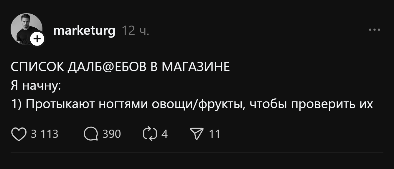 20 Skyscrew Палата №6 Раздражающие действия покупателей 5 часов назад Скриншот Threads Комментарии Магазин Покупатель Продукты Негатив Мат Длиннопост 2 1 Ещё 0