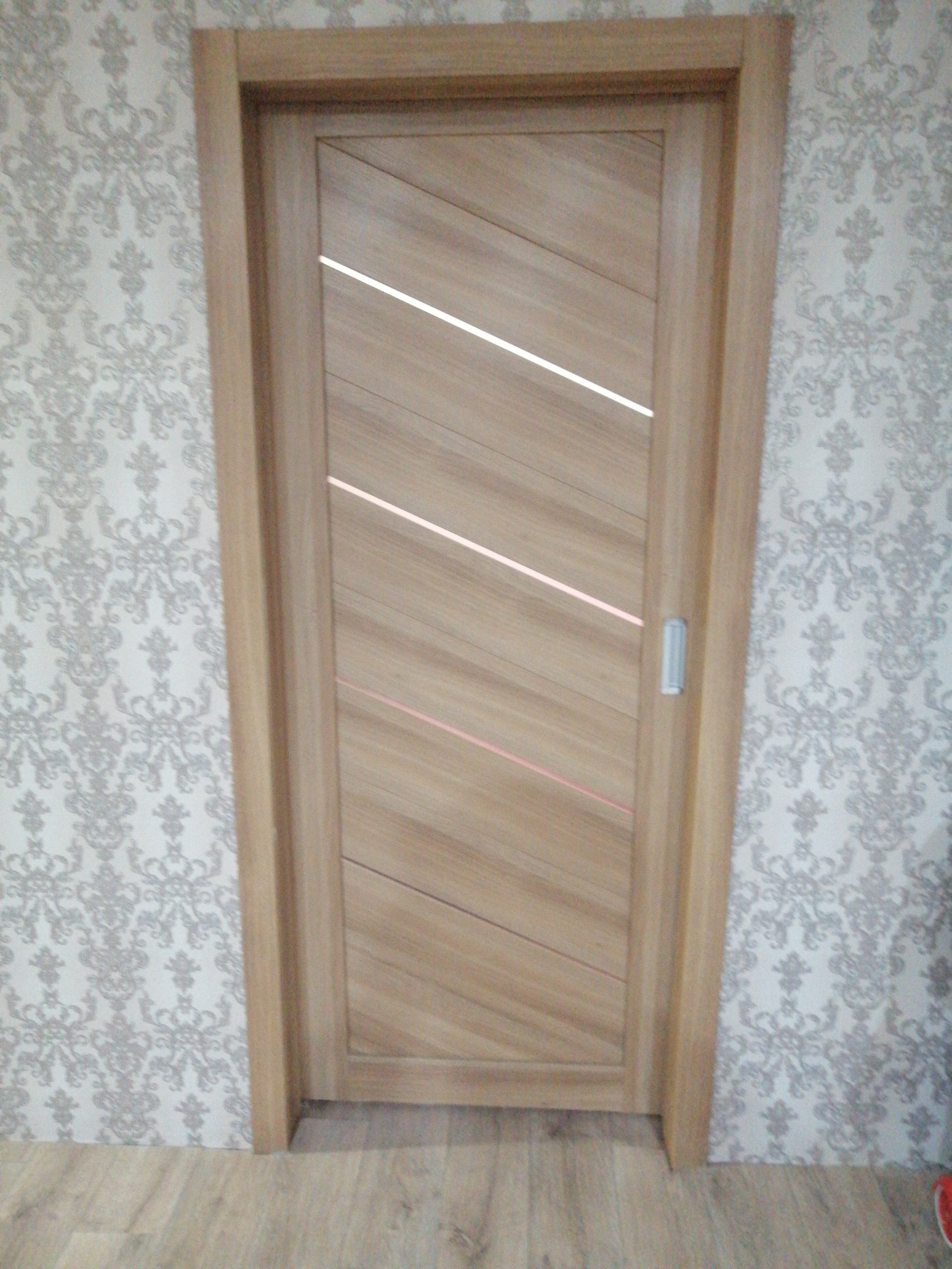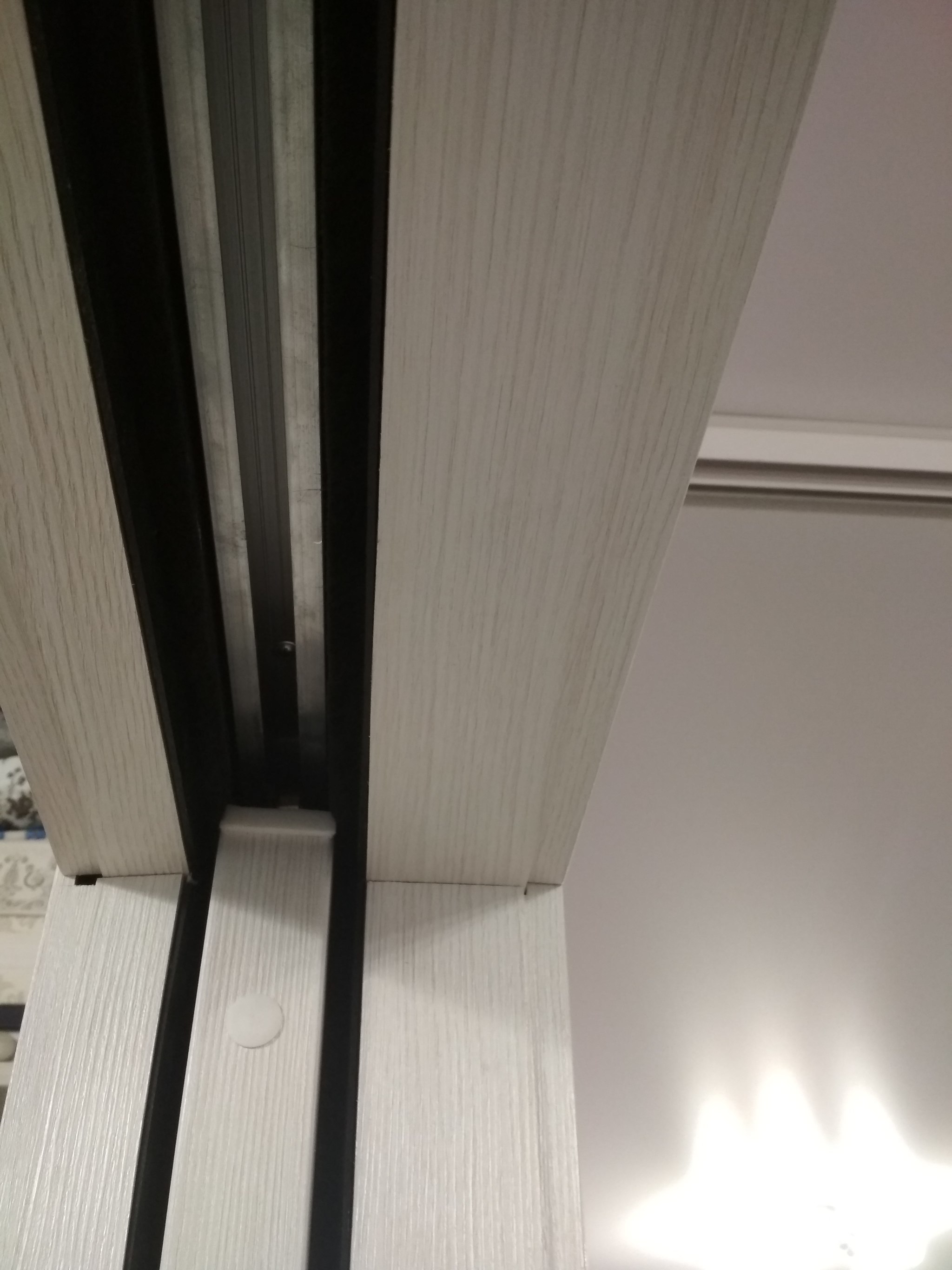 3. Установка креплений к полотну. Дальше дверь вешается на ролики и подкручивается. Регулируются стоперы, чтобы при резком открывании и закрывании дверь не билась.