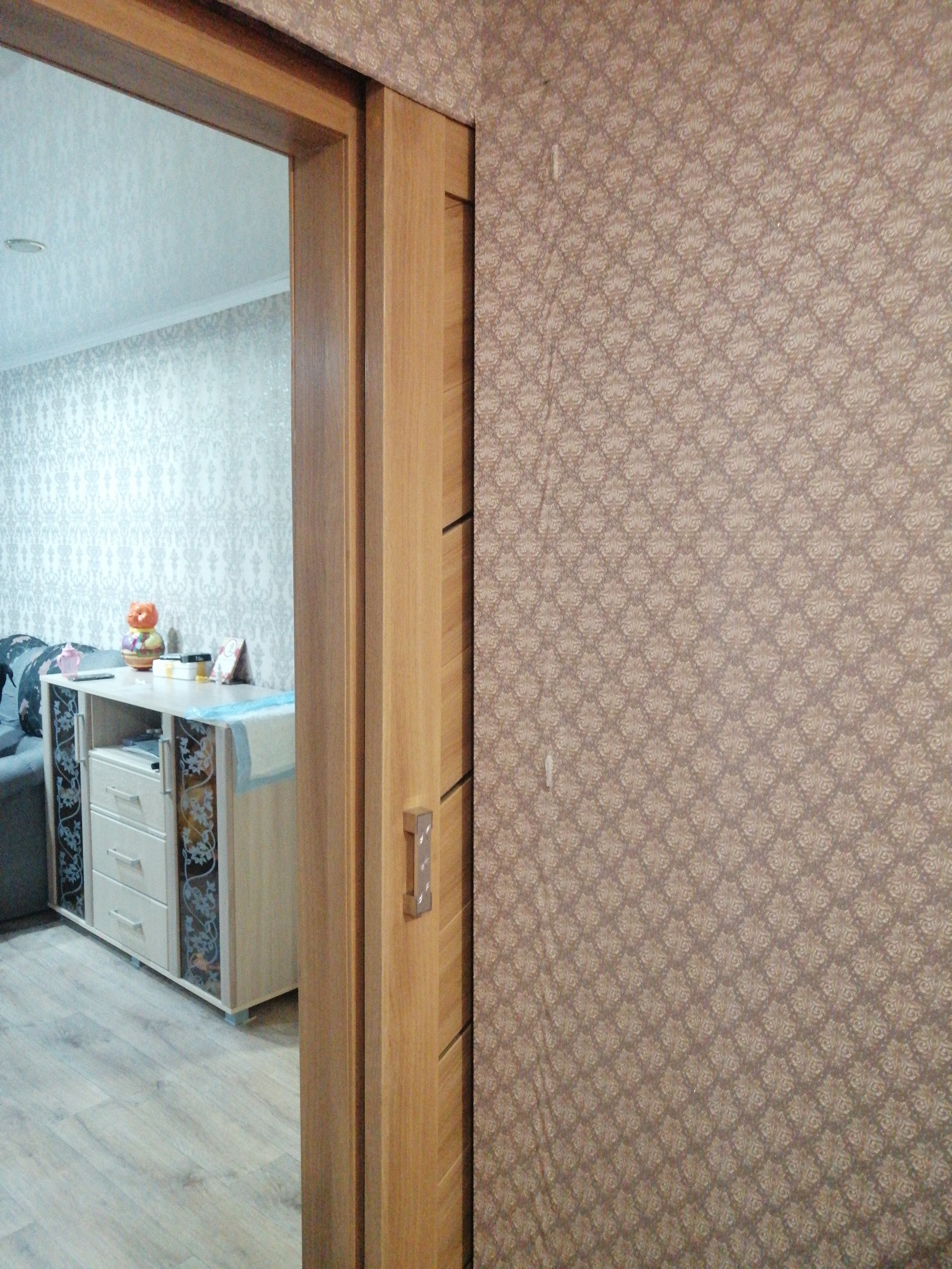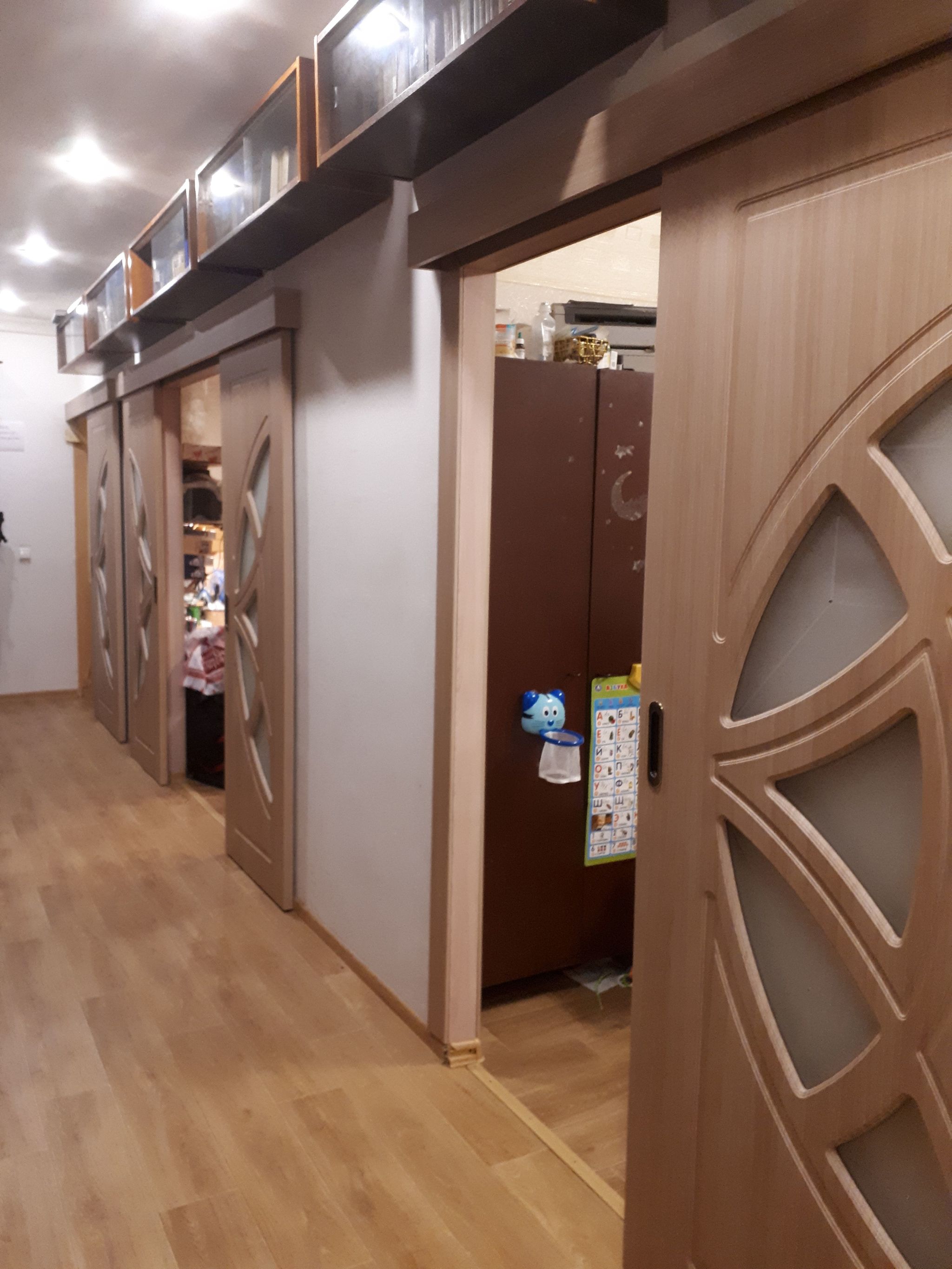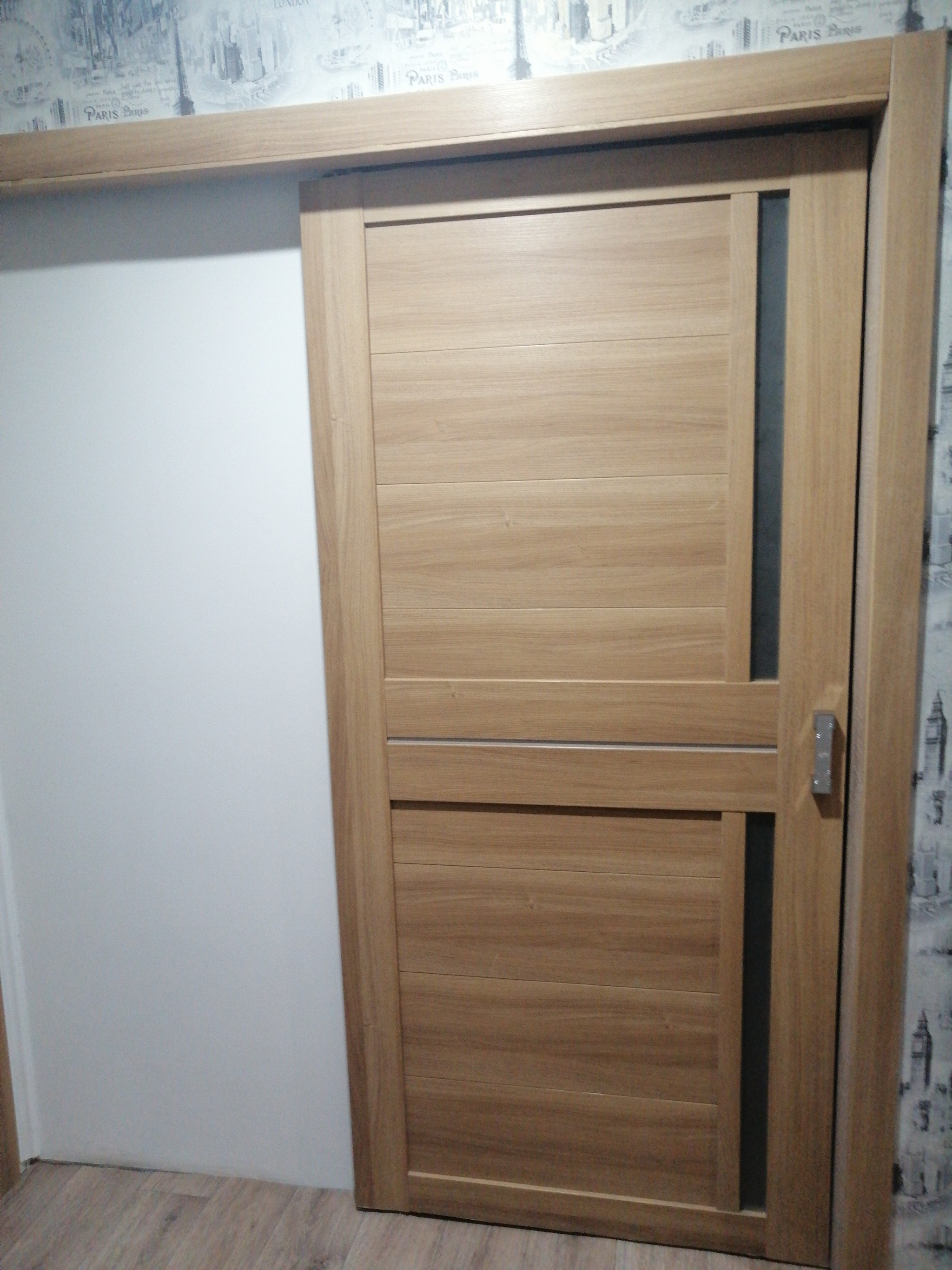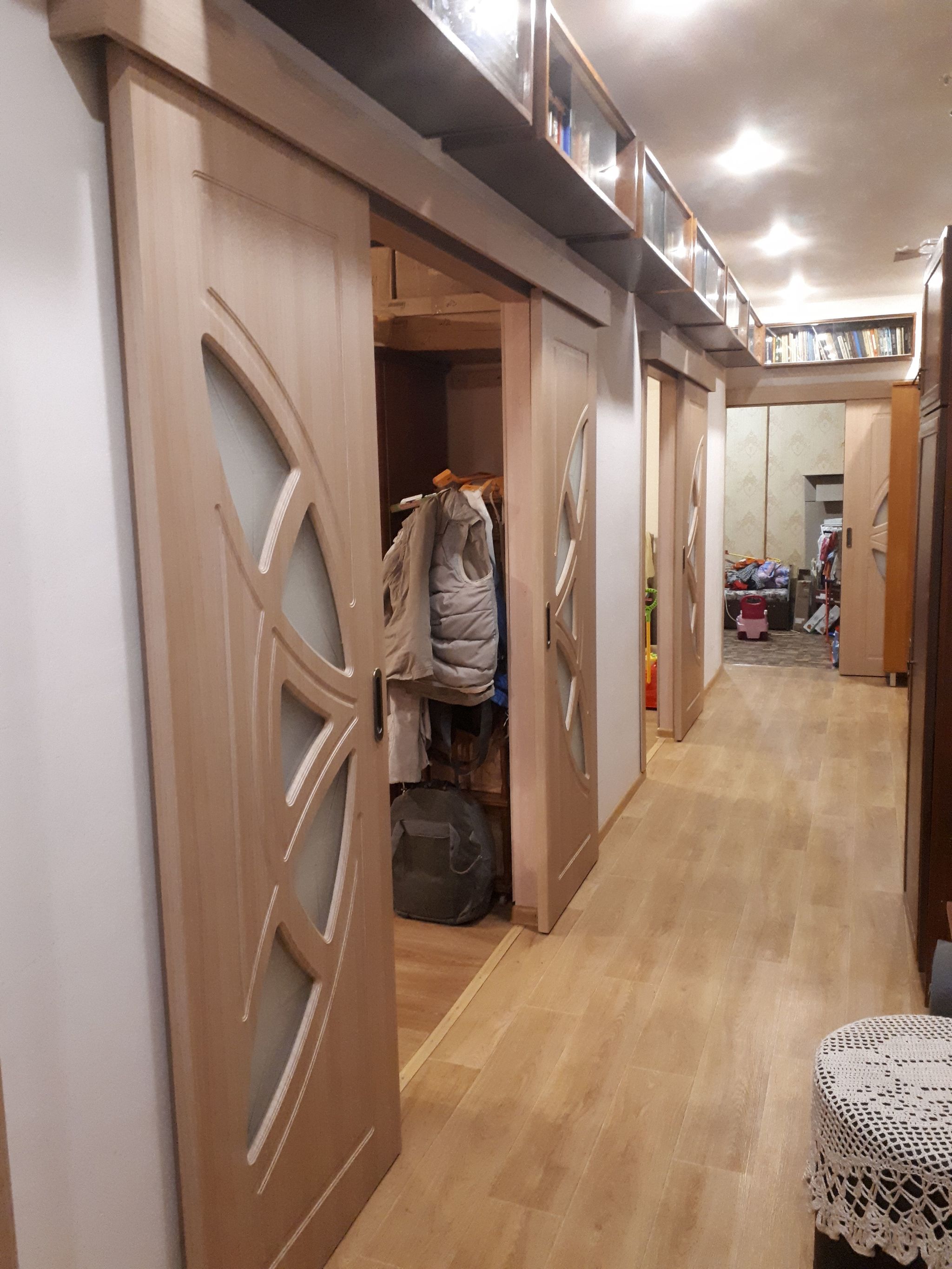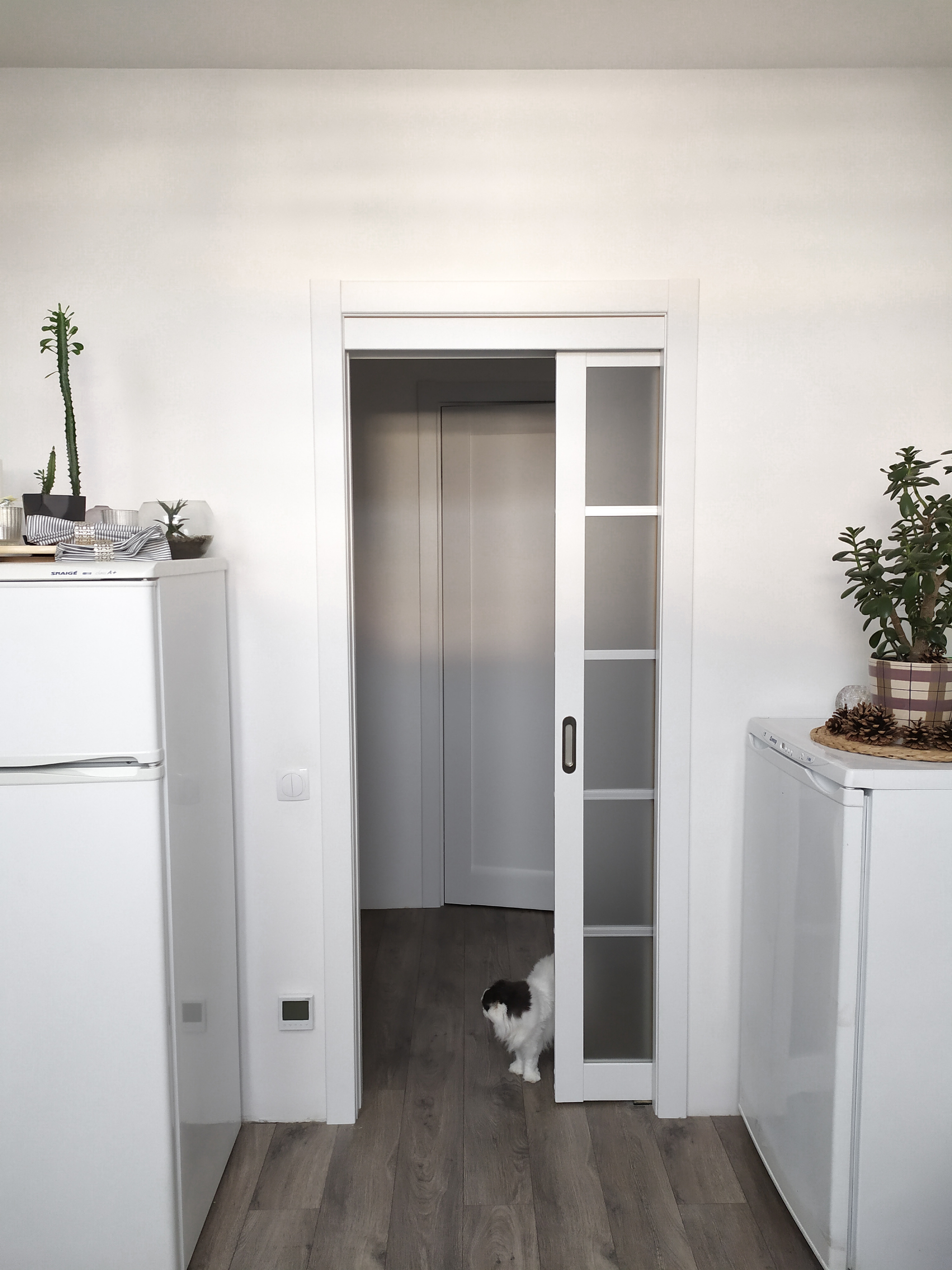 Захотелось мне на этапе ремонта, чтобы дверь в кухню ходила внутри стены (чтобы со стороны коридора и кухни не занимать место, которого и так мало). Это было 2 года назад. Тогда я смогла найти касету для такой системы только дорогую, поэтому решено было сэкономить и сделать каркас руками папы.
