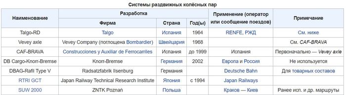 В 1964 году испанской компанией «Talgo» разработана технология автоматического изменения ширины колеи.