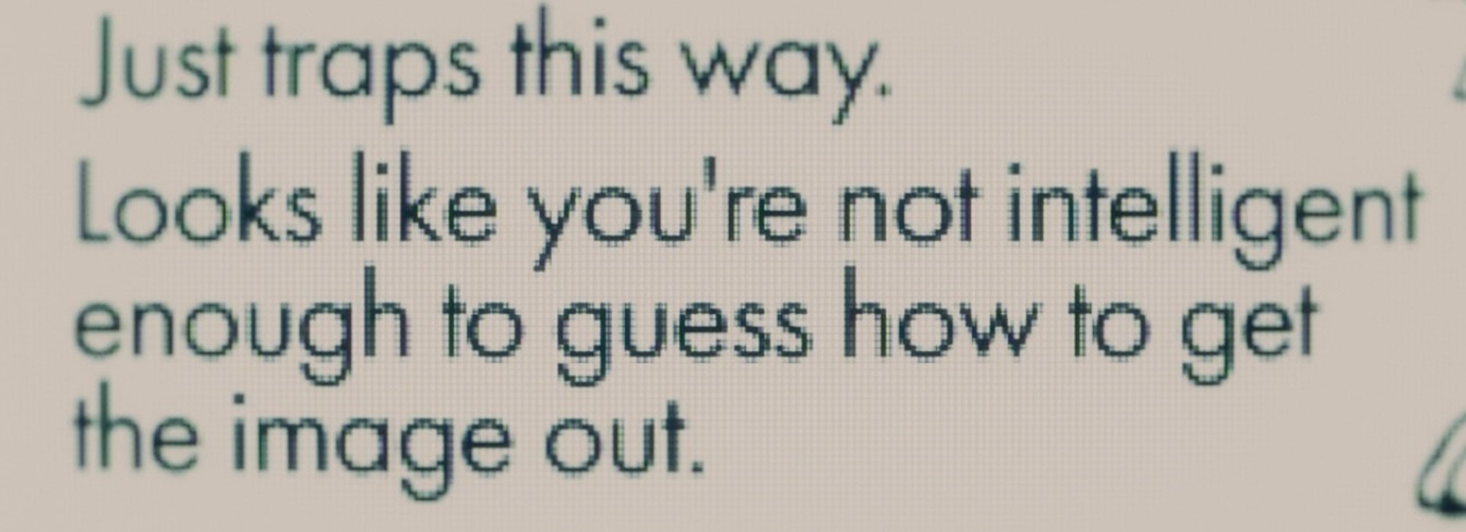 Это была приманка. Тебе не под силу раскрыть смысл. Ты недостаточно умён.