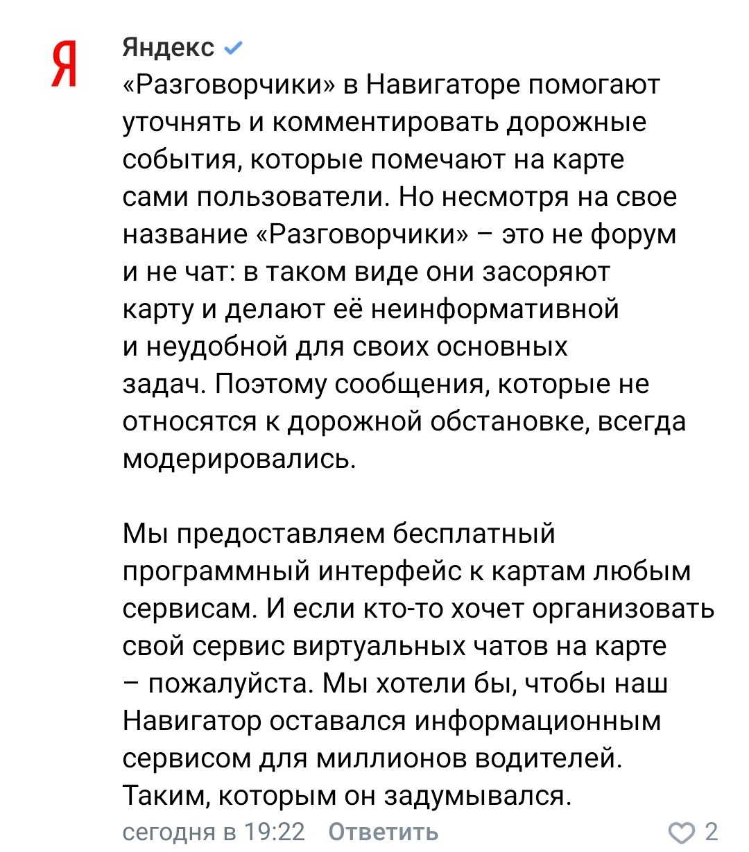 14 sieg1994 Разговорчики не для разговоров! 5 лет назад На волне "кибермитингов" на Яндекс.картах и активной чистке этих самых митингов Яндексом пользователи начали писать гневные комментарии в группе Яндекса ВК. Ответ от Яндекса. Яндекс Скриншот ВКонтакте Ещё 0