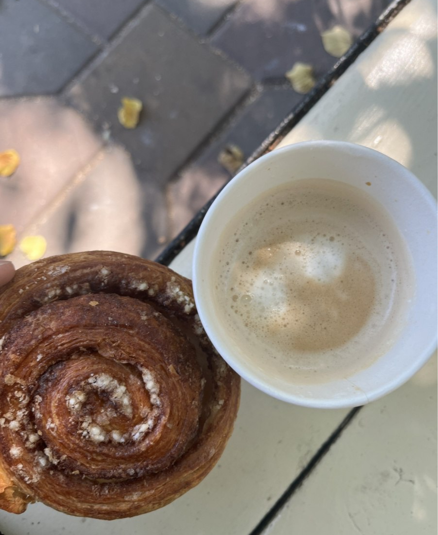 Оригинал ( это моё любимое из дневников питания): Сначала был завтрак из двух яиц, салатика и бутерброда с сыром, а потом перекус булочкой с кофе.