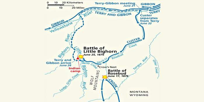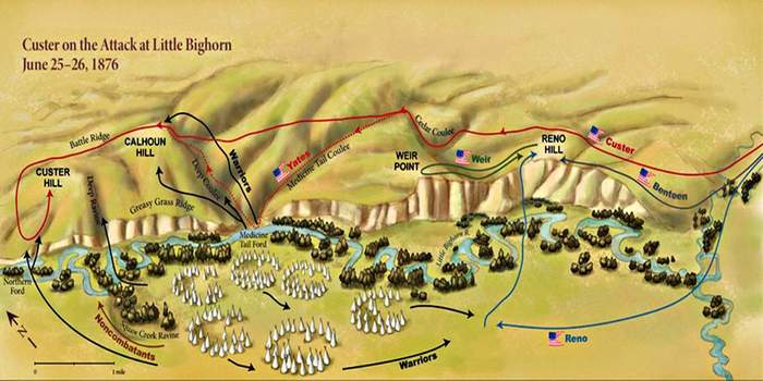 В составе колонны генерала Альфреда Терри помимо пехоты был также и 7-й кавалерийский полк. Им командовал Джордж Кастер. Это был известный офицер, принявший в своё время капитуляцию у Роберта Ли — знаменитого генерала южан. Кастер был медийным персонажем.
