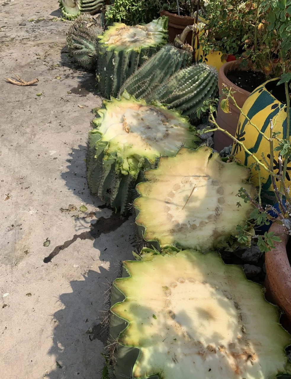 Фото взято с рэдита, кактус пришлось пилить бензопилой. Обратите какие толстые проводящие пучки внутри ствола.