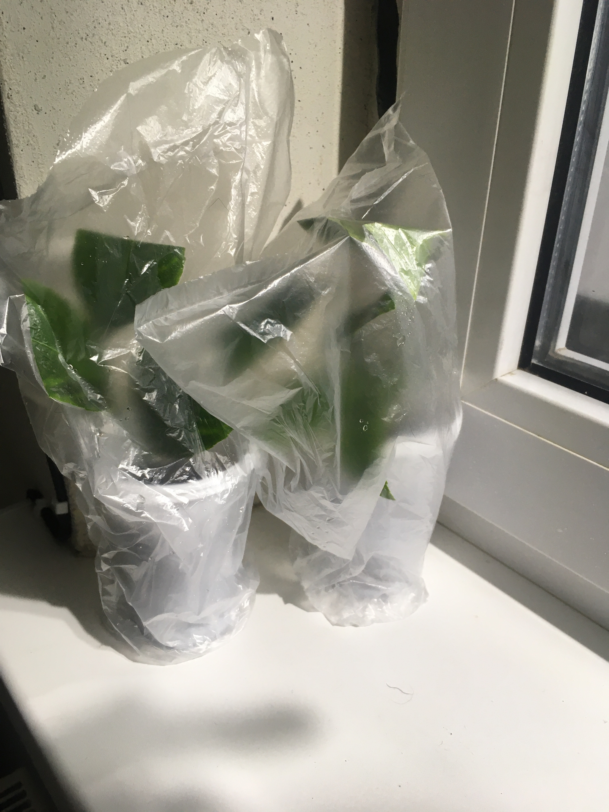 5. Делаю тепличку из пакета с пакетами.Аккуратно сверху надеваю пакет, не завязываю, оставляя небольшой доступ свежего воздуха.