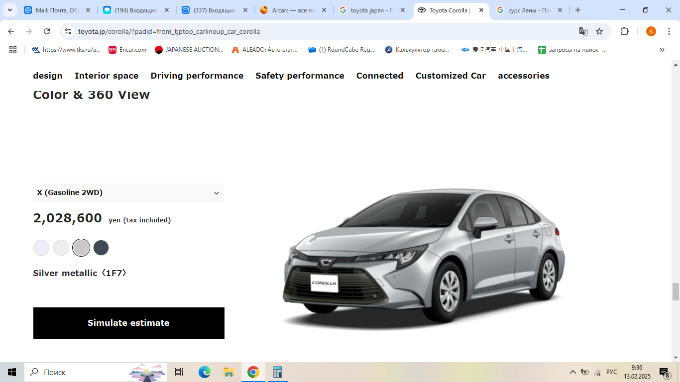 Тойота Королла в Японии на официальном сайте Тойота 2 028 600 йен. Курс ЦБ сегодня 0,61 рубля за йену. 2028600*0,61 = 1 235 986 рублей