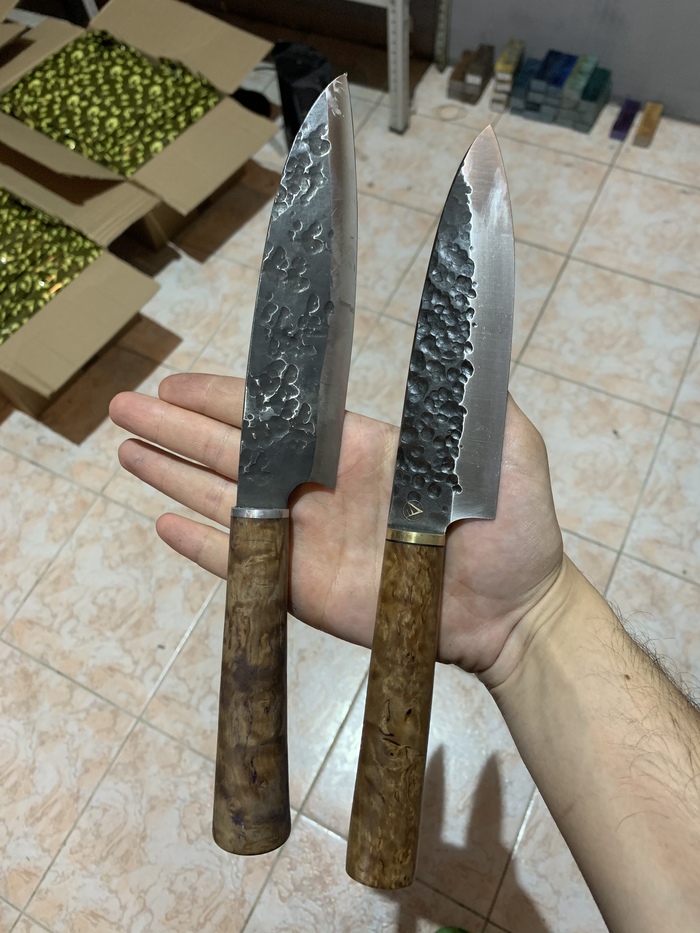 Показываю его в сравнении с ножом который сделал позавчера: