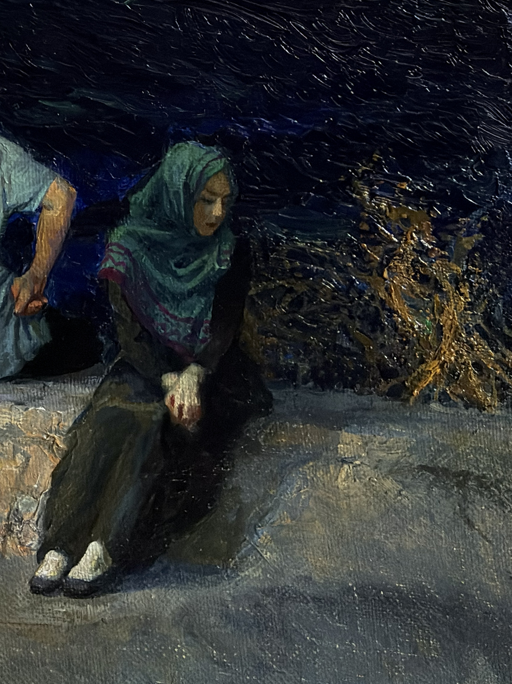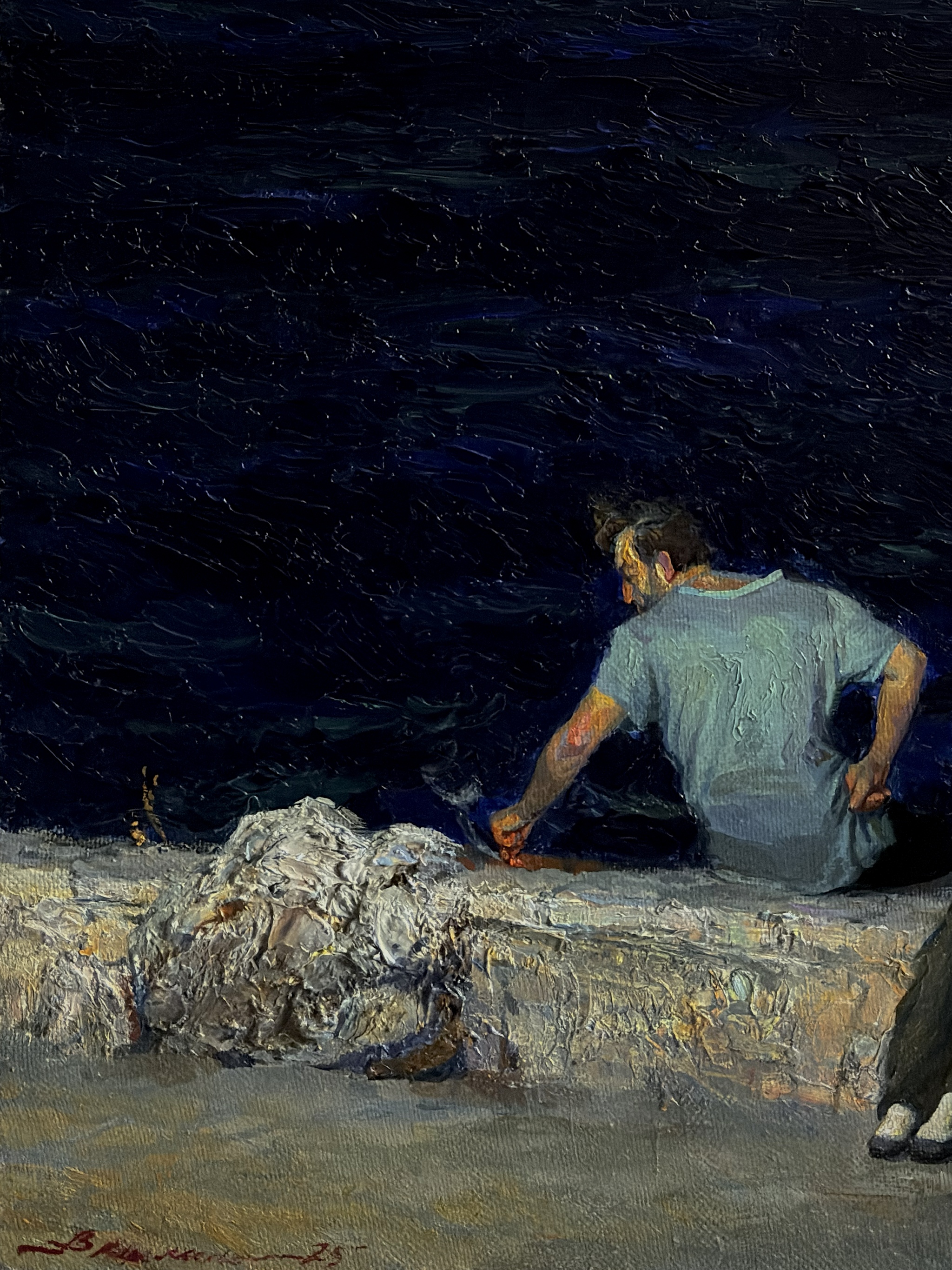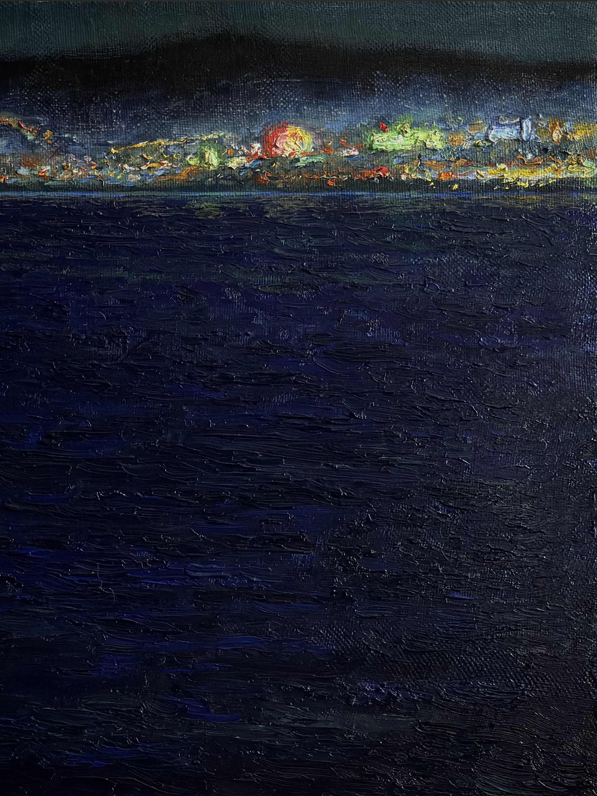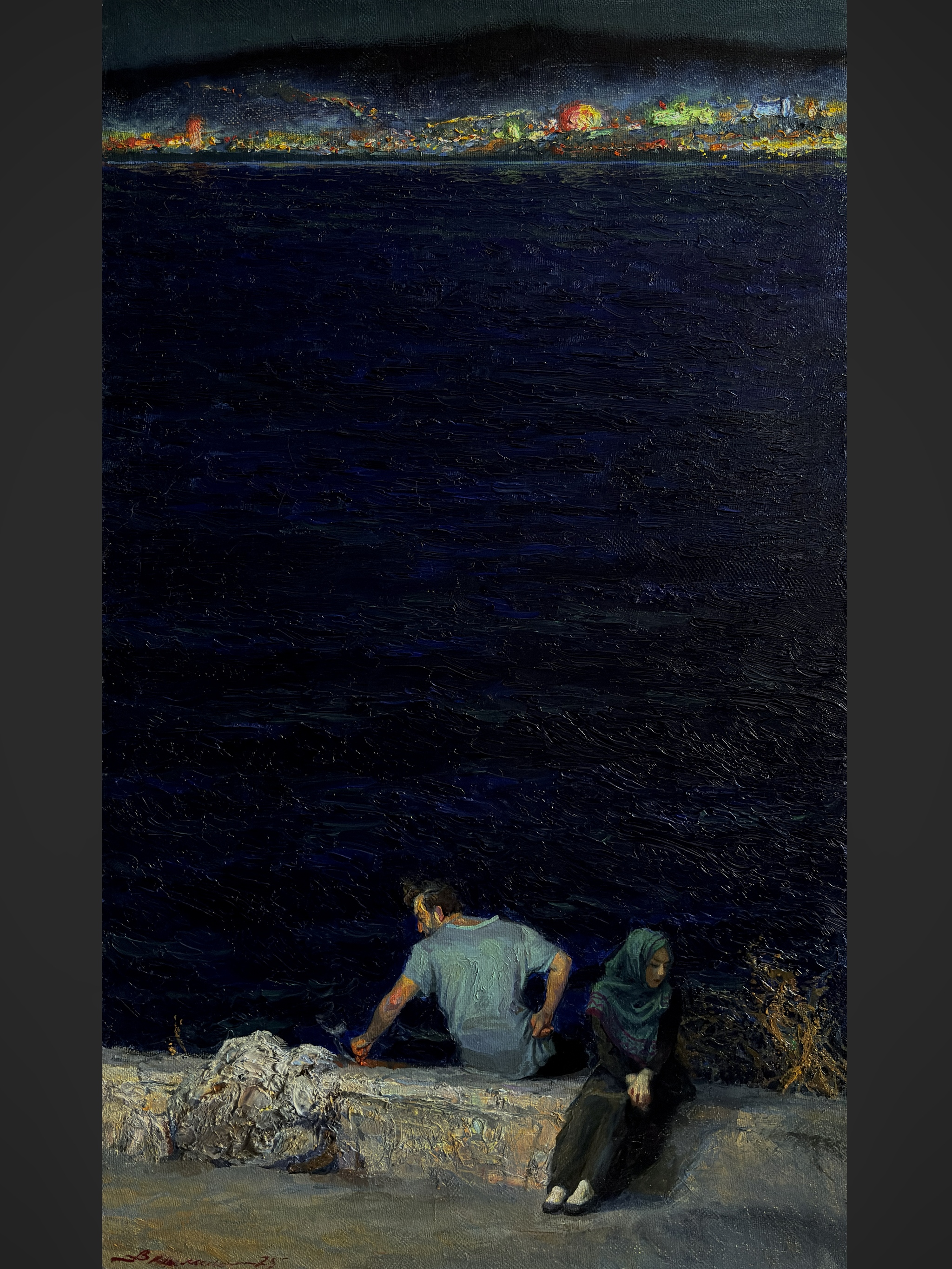 Мотив основан на натурном впечатлении о поездке в Анталию. Вечер. Темная полоса шумного залива, разделяющая берега. Глубокая стихия, разделяющая людей.