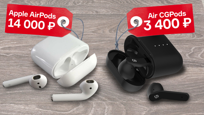 Это Air CGPods. Тюменский ответ Apple AirPods 2. Я НЕ хотел выпускать эти наушники. Категорически НЕ хотел! В них нет влаго-защиты, крутого кейса. Хотя они все равно круче «яблочек» хотя бы из-за продвинутого управления с почти дюжиной команд против полудесятка у «огрызка». Но клиенты просто бомбардировали нас вопросами типа «а у вас есть наушники как у эплА?», «а когда будут?». Вот, держите! Кушайте, как говорится, не обляпайтесь!