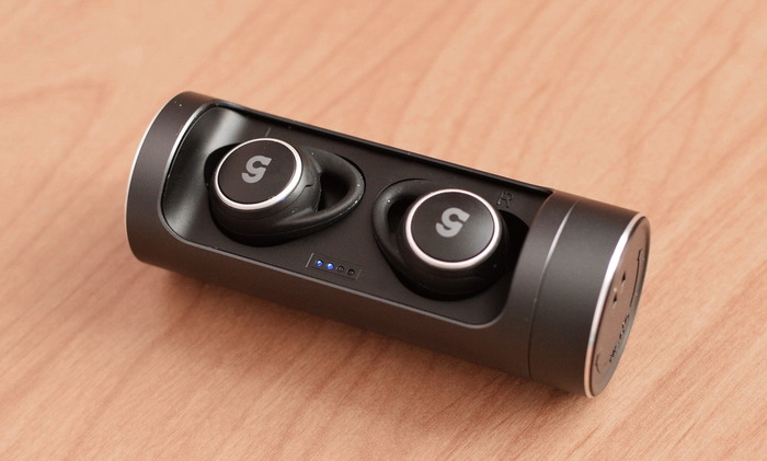 CaseGuru CGPods 4.2, крайние слева. Фото из сравнительного теста авторитетного сайта мобильной тематики Mobile-Review.com в 2019 году. CaseGuru CGPods 4.2 получили звание «лучшие беспроводные наушники» в состязании с такими моделями как Meizu Pop, Apple AirPods и Elari NanoPods.
