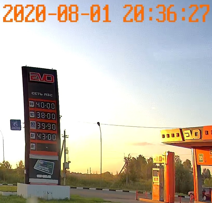 Так вот, товарищ @kort, я отцепил флешку с регистратора и достал с нее видео, как проезжаю мимо заправки 1 августа 2020 года.