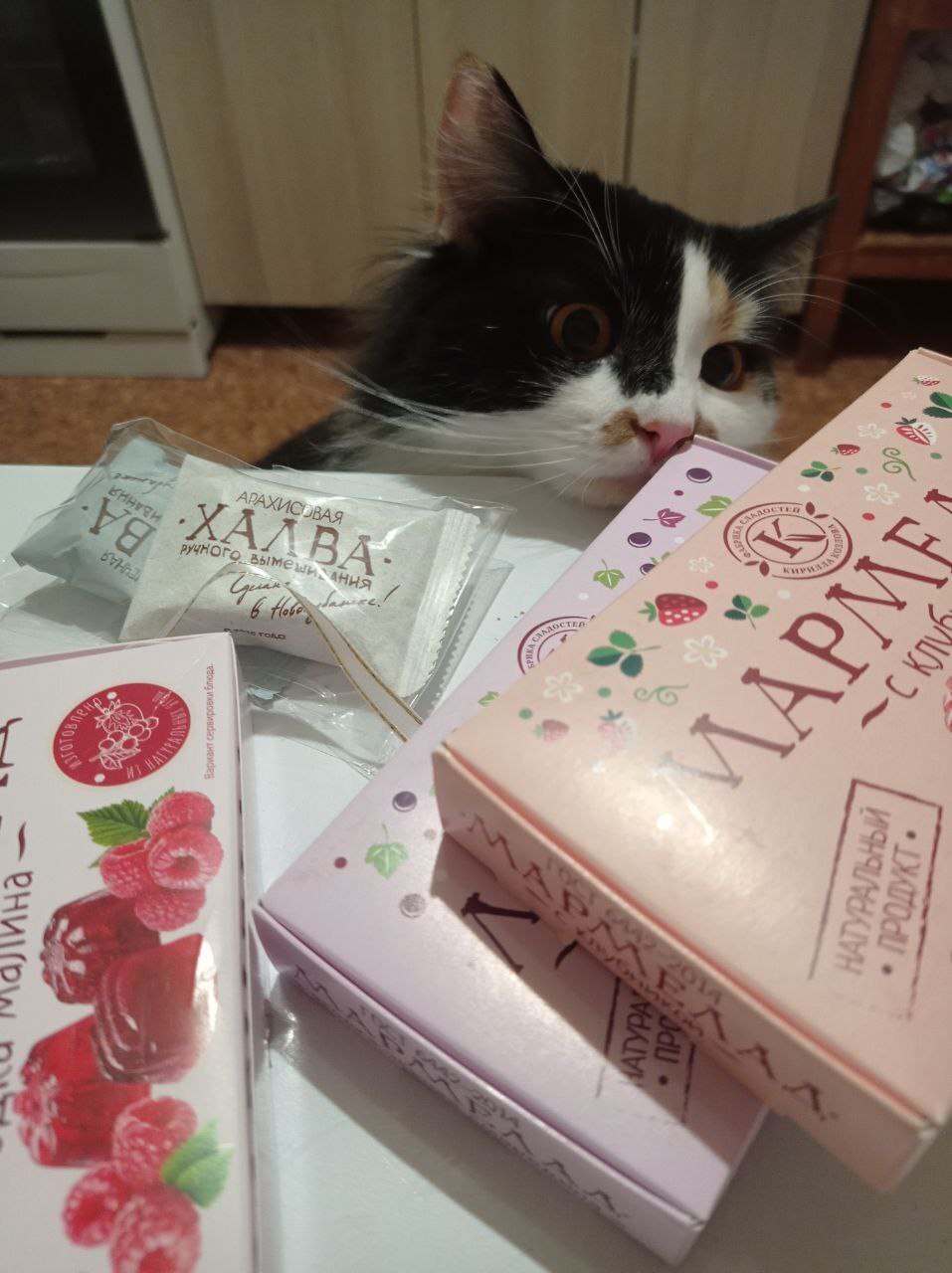Человеки! Себе вкусняшку купили, а кисоньке?! Понюхаю: ммм пахнет то вкусно-ягодкой)